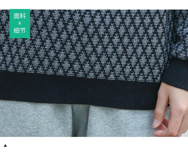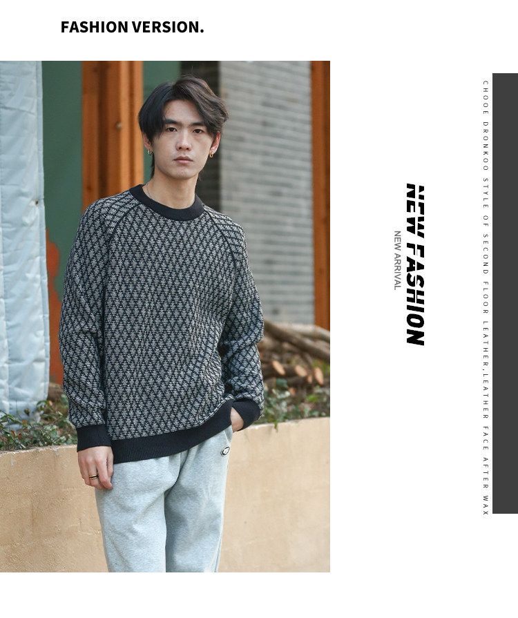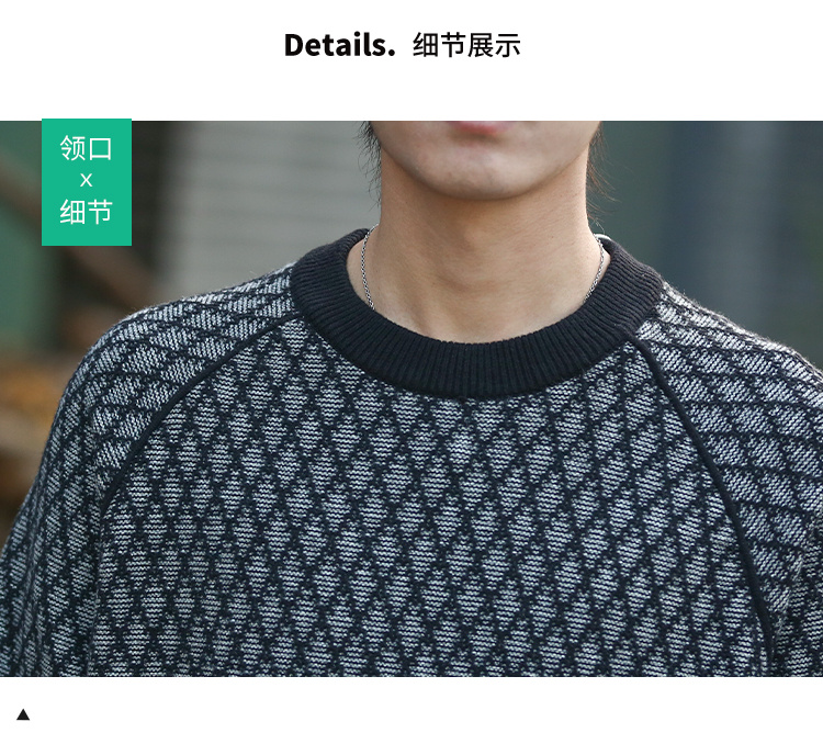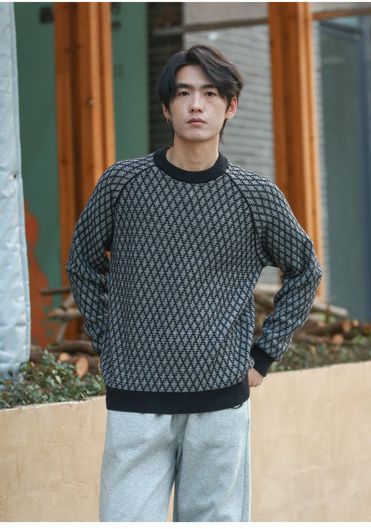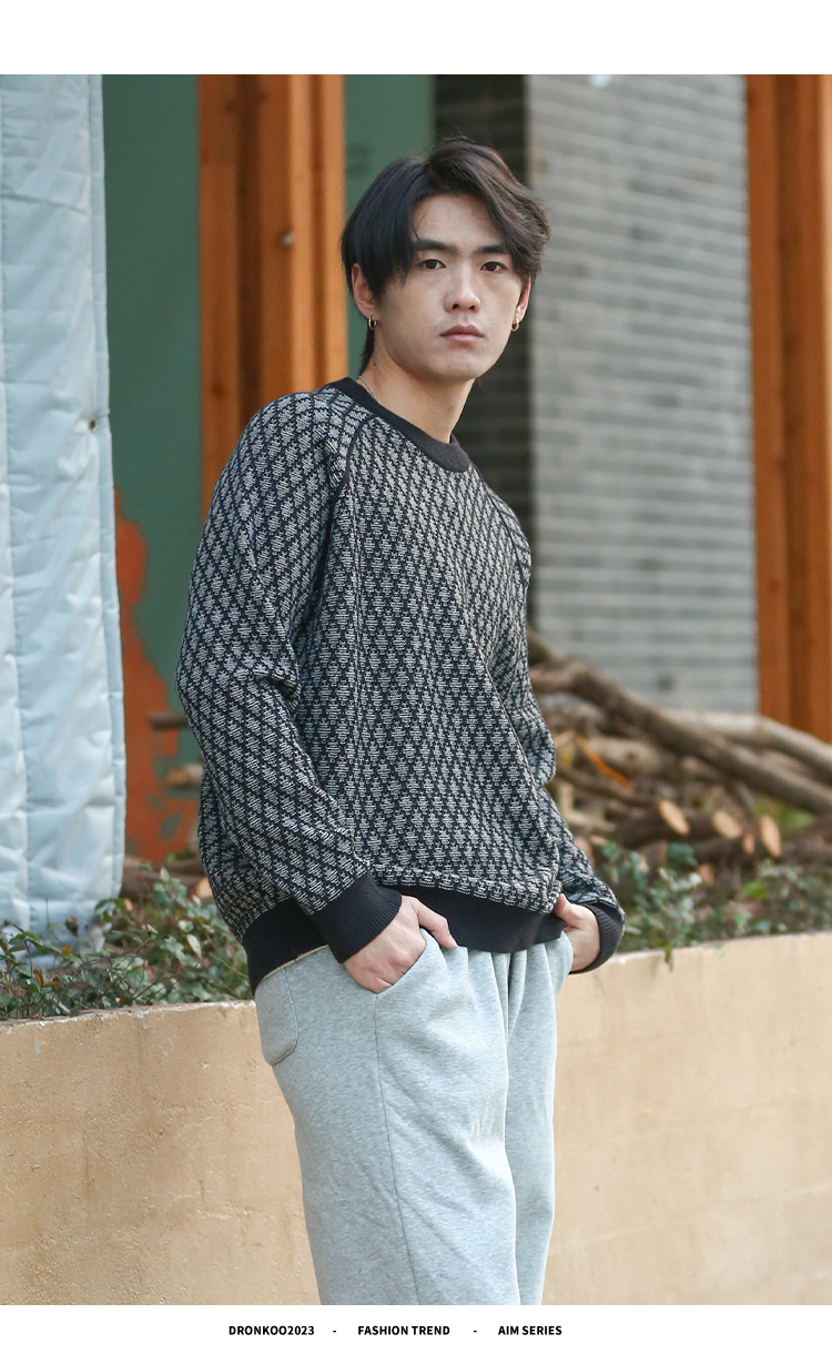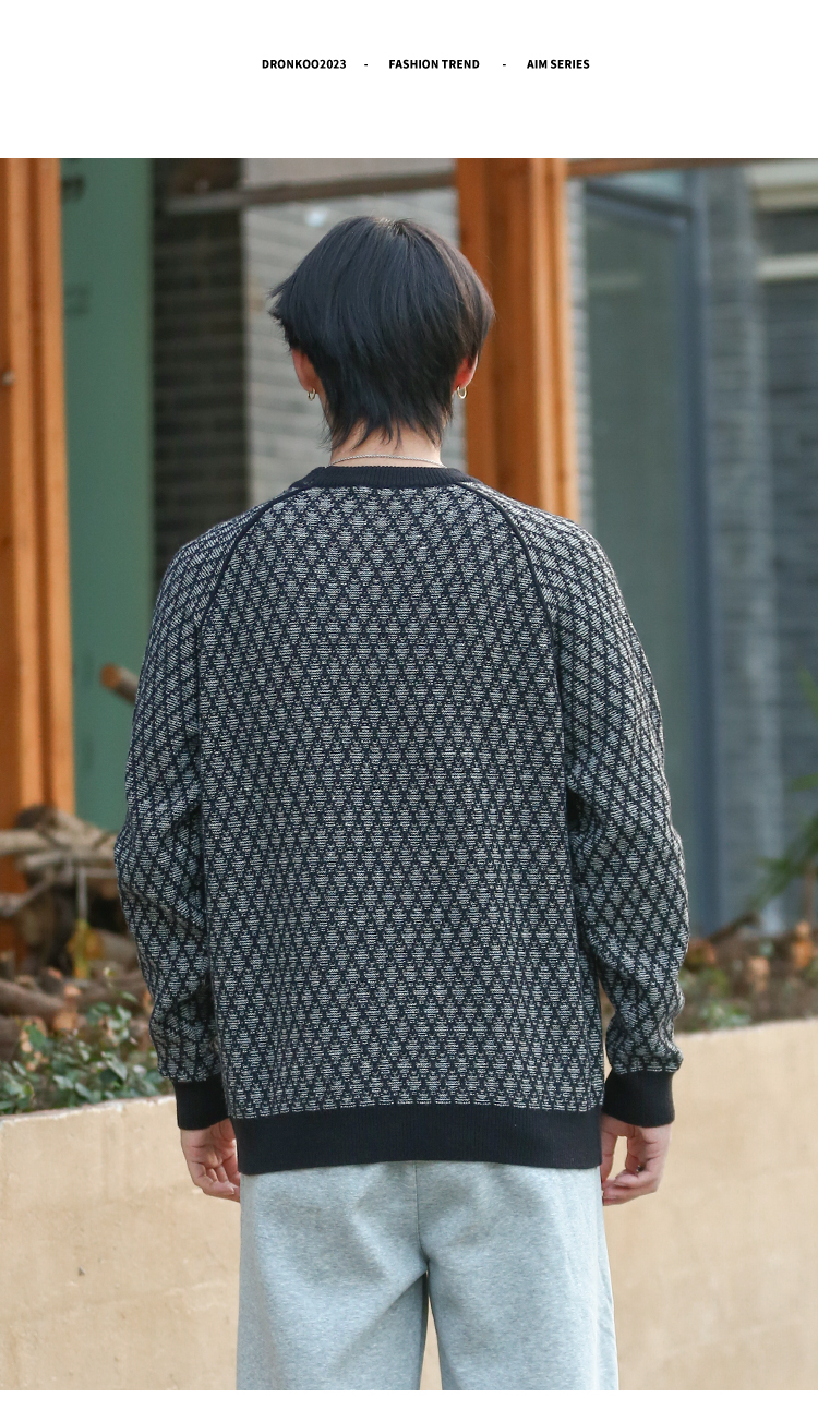 DRONKOO 2025 圆领满幅撞色菱形格提花厚毛衣