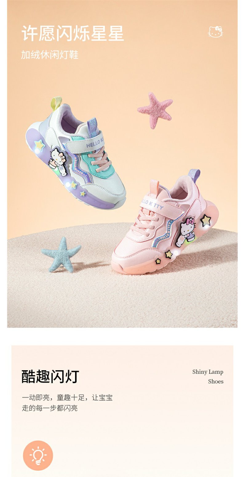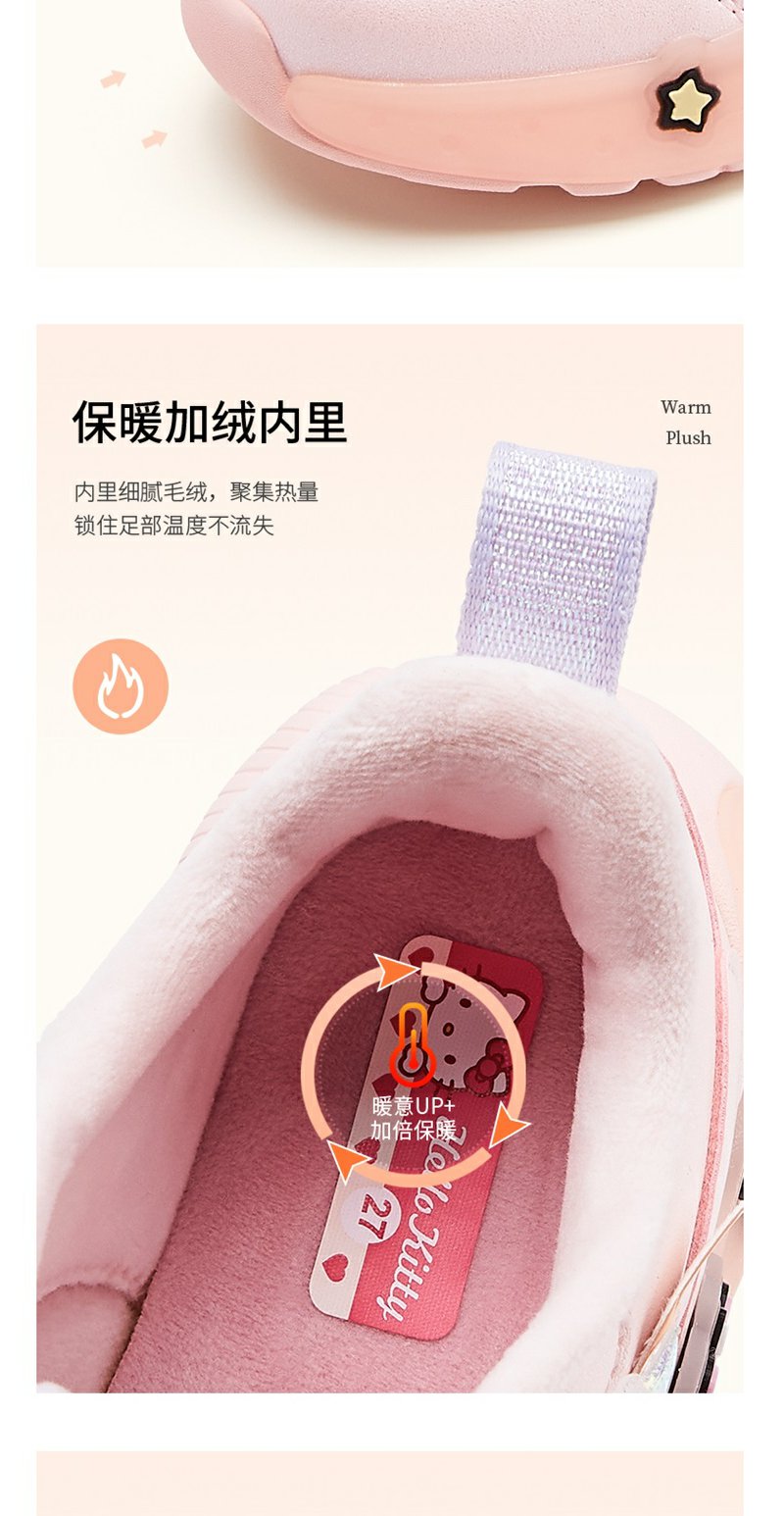 HelloKitty女童鞋子冬季加绒运动鞋2023新款儿童二棉鞋宝宝亮灯鞋