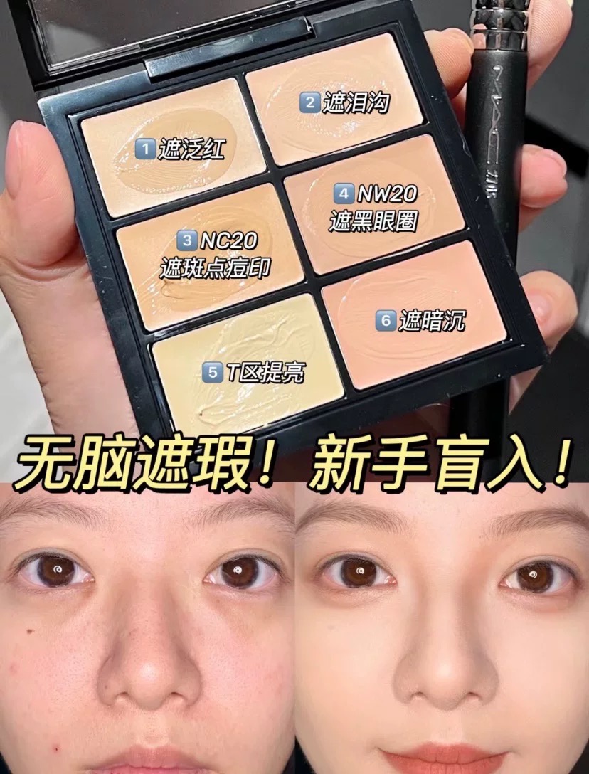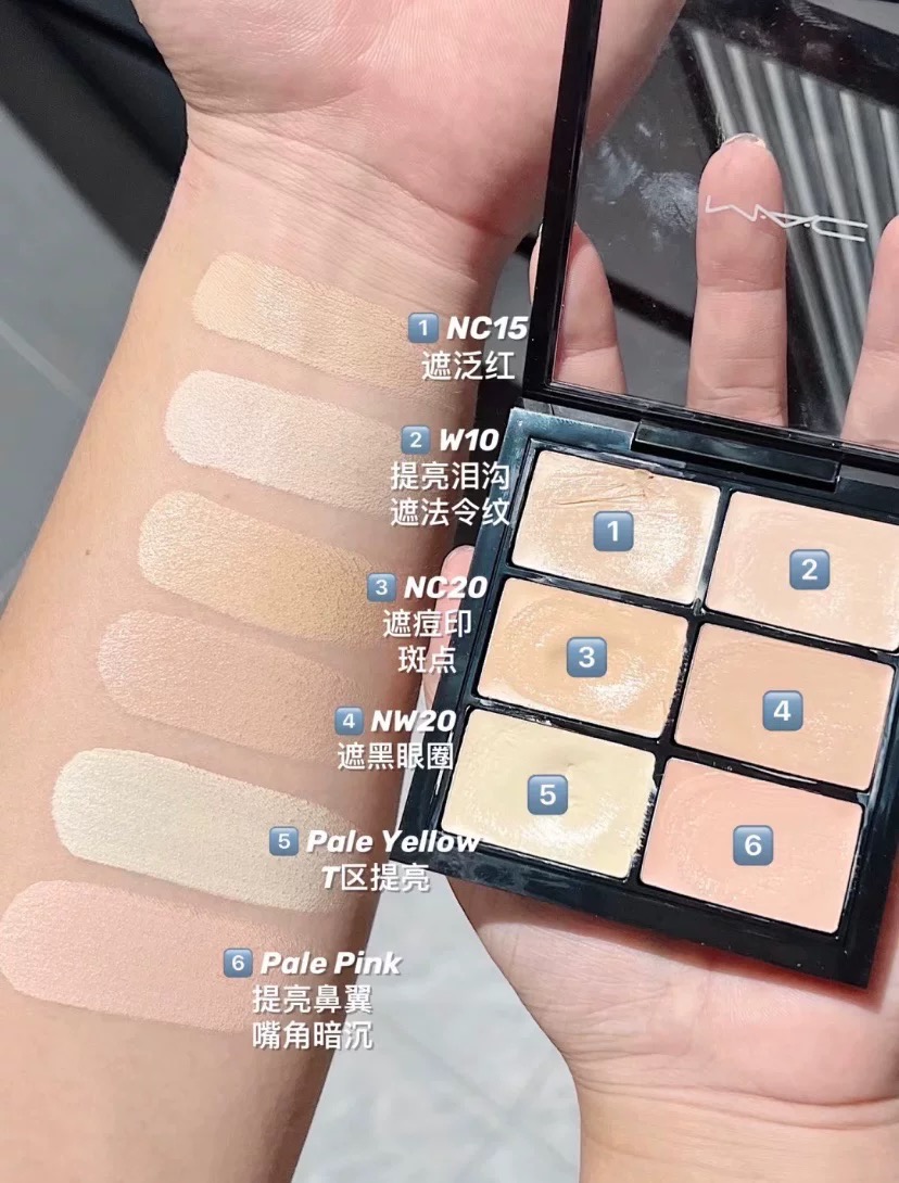 MAC魅可六色遮瑕盘light6色遮瑕膏遮黑眼圈法令纹/痘印/泪沟