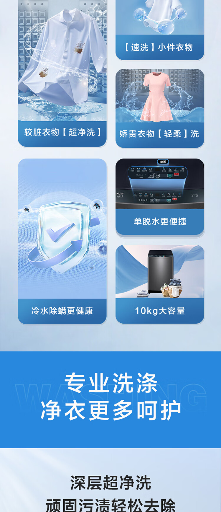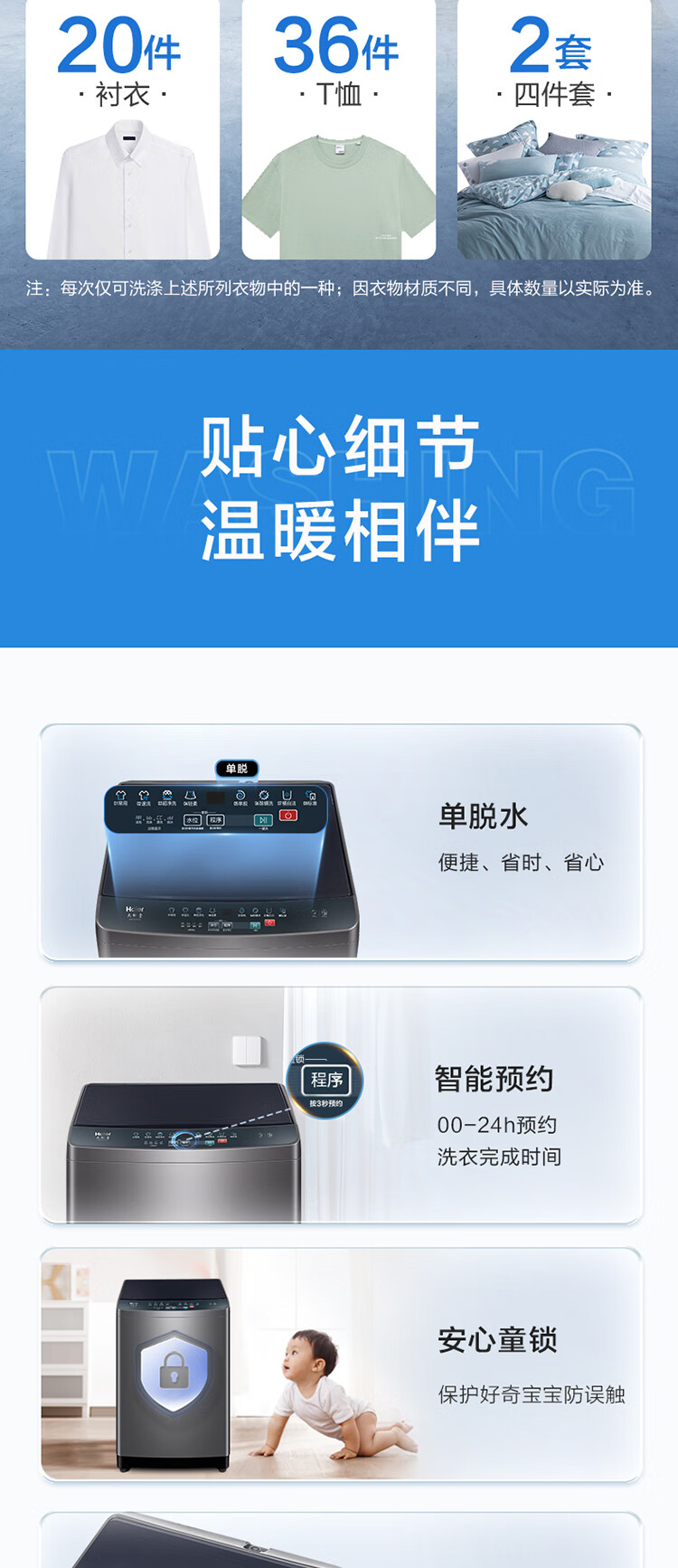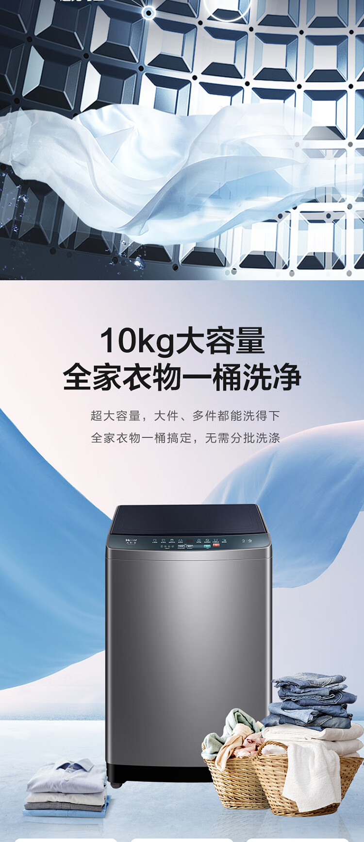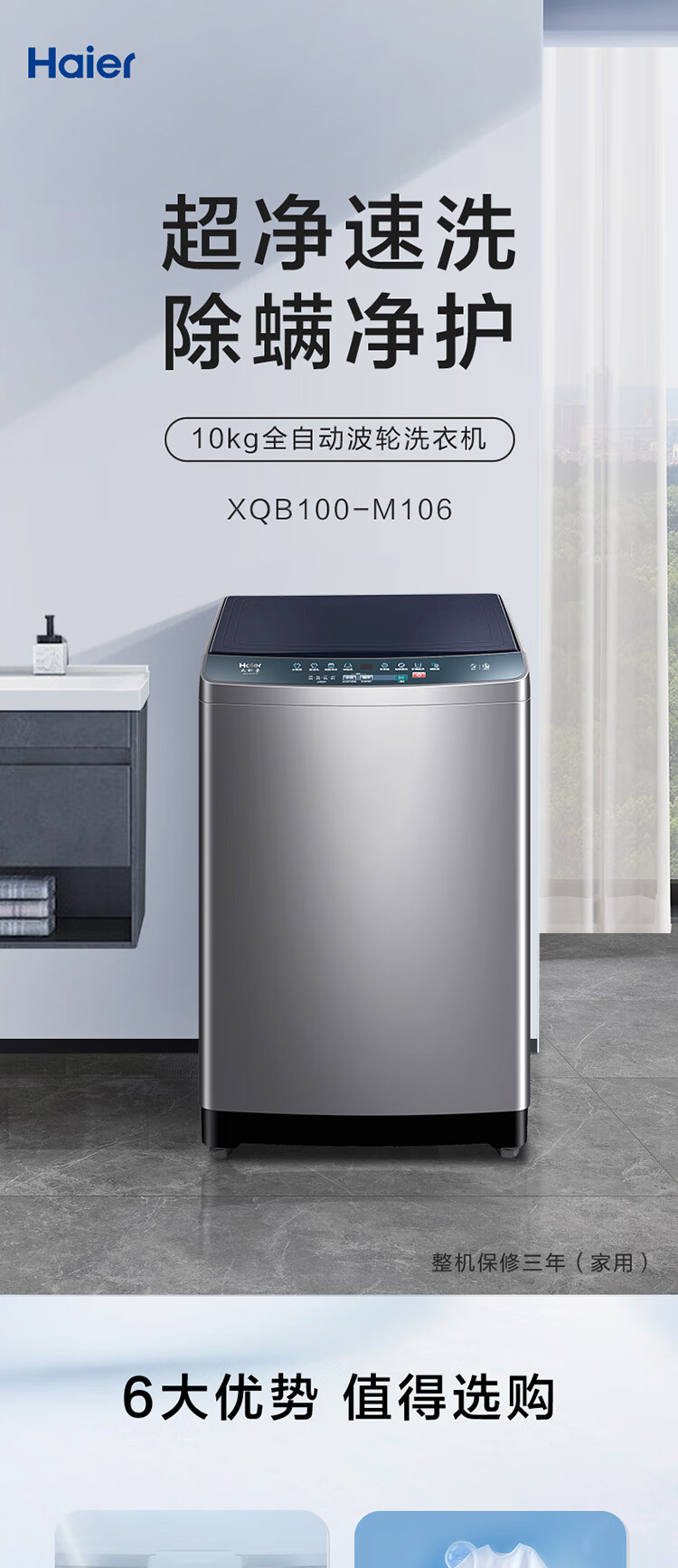 海尔10公斤波轮洗衣机全自动家用大容量 智能预约 超净速洗 XQB100-M106