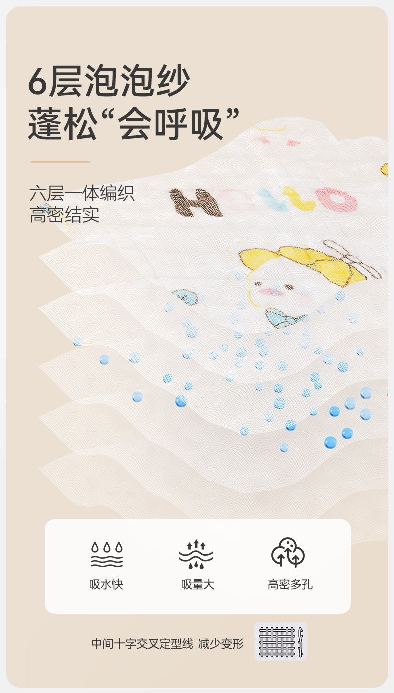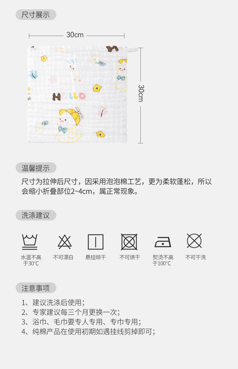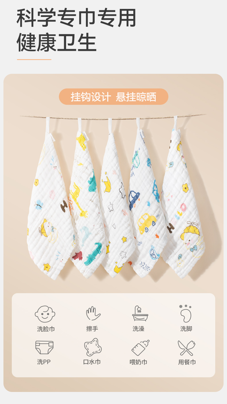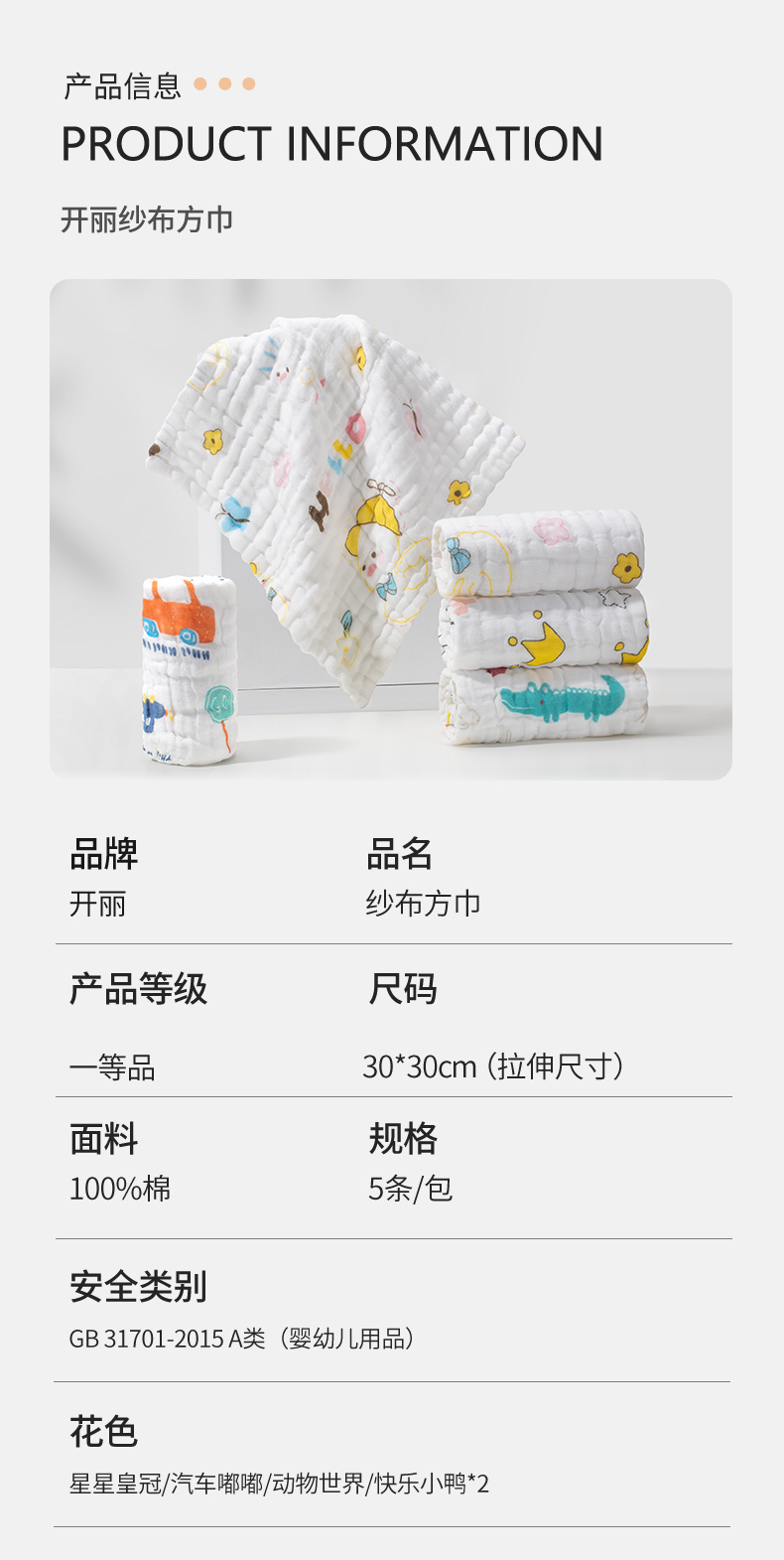 5条|开丽A类六层100%棉纱布方巾拍嗝巾FX