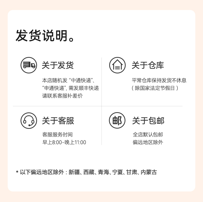 【不发货地区】新疆、西藏、青海、内蒙、甘肃、宁夏