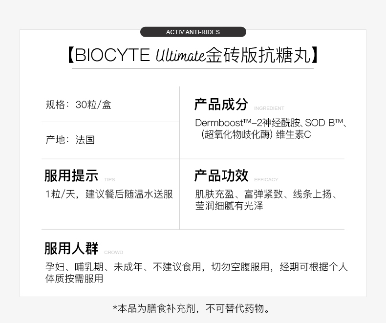 保税直发 BIOCYTE 碧维斯 Ultimate 金装抗糖丸 30粒/盒 1盒装/2盒装