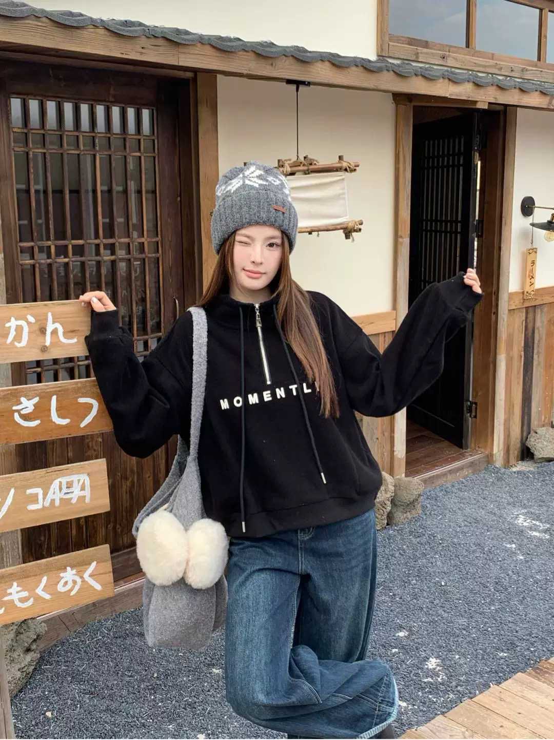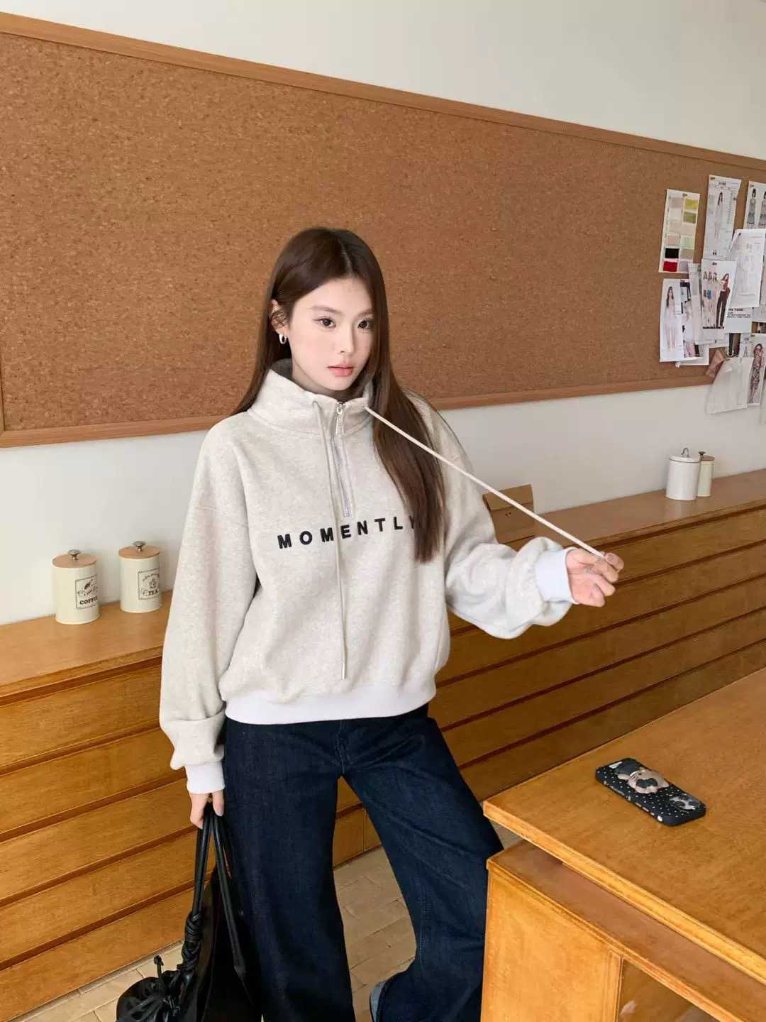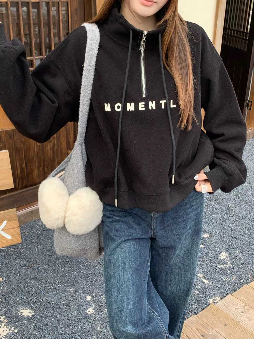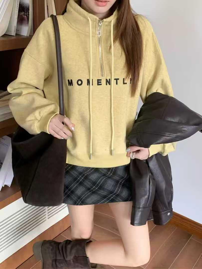 6525# 时尚刺绣字母半拉链卫衣 当秋冬的凉意袭来,这件加绒半拉链立领卫衣就是你的时尚取暖器!