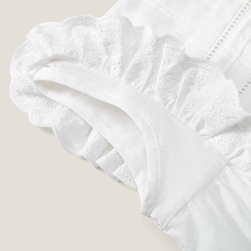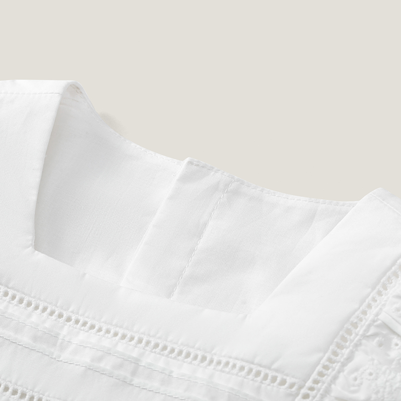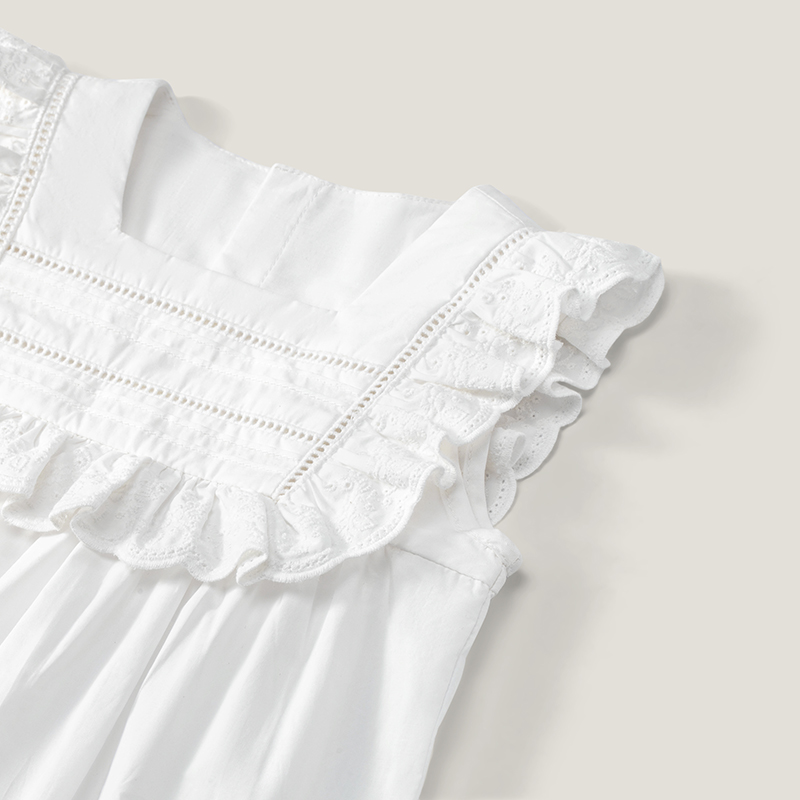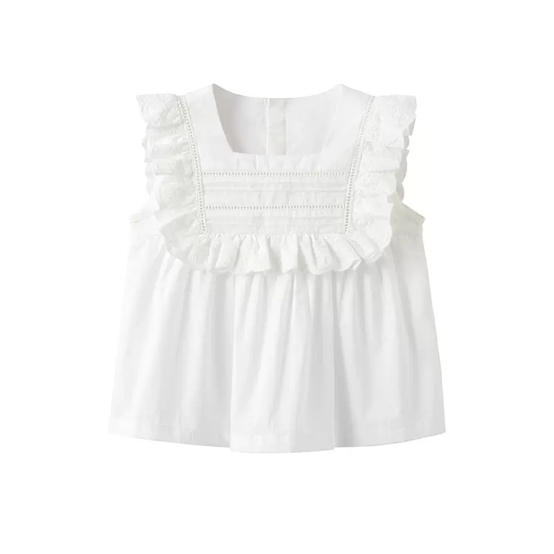 英氏女童T恤23新款夏季方领套衣纯棉短袖花边上衣衬衫YRTCJ2P284A