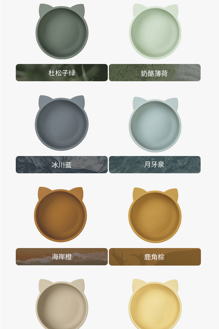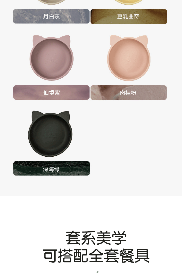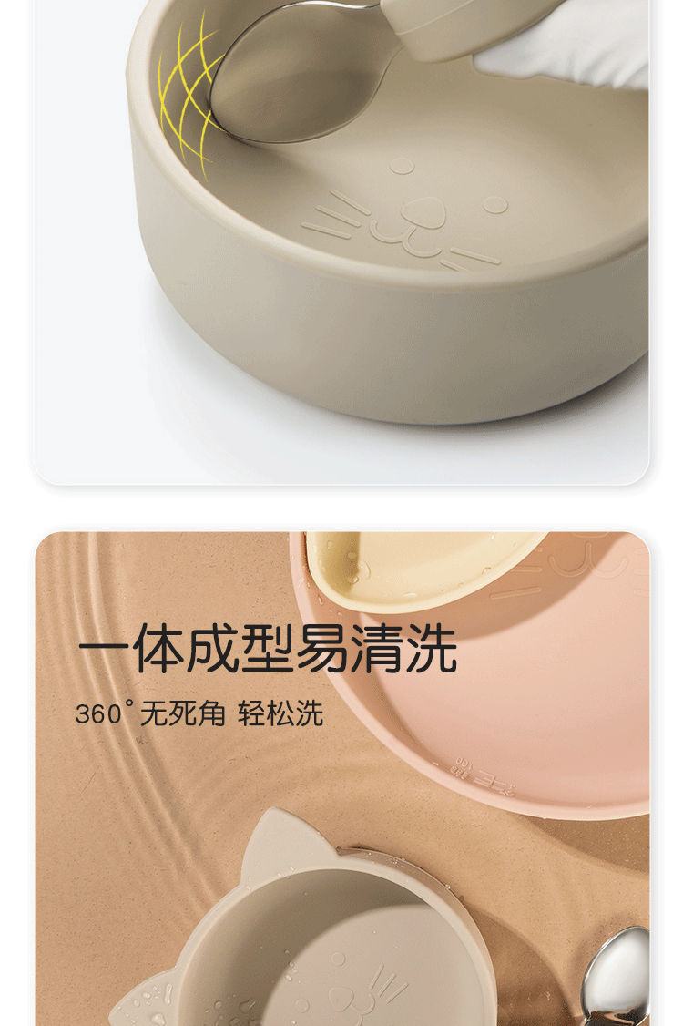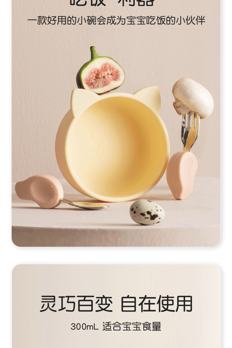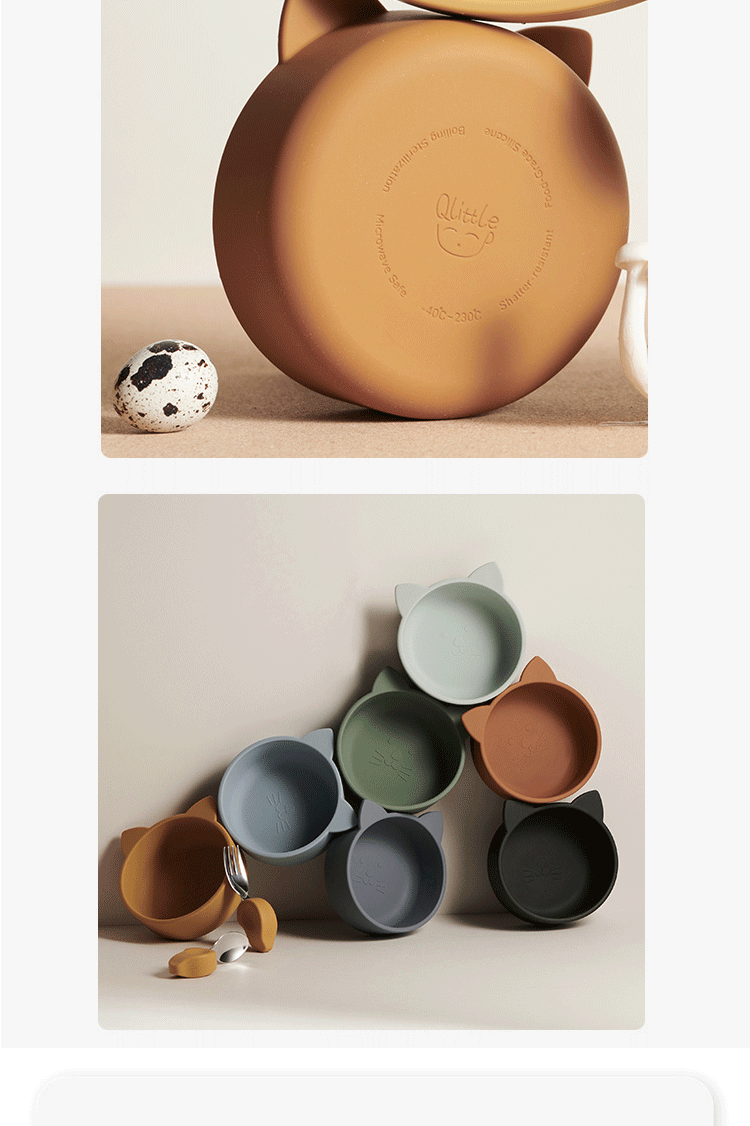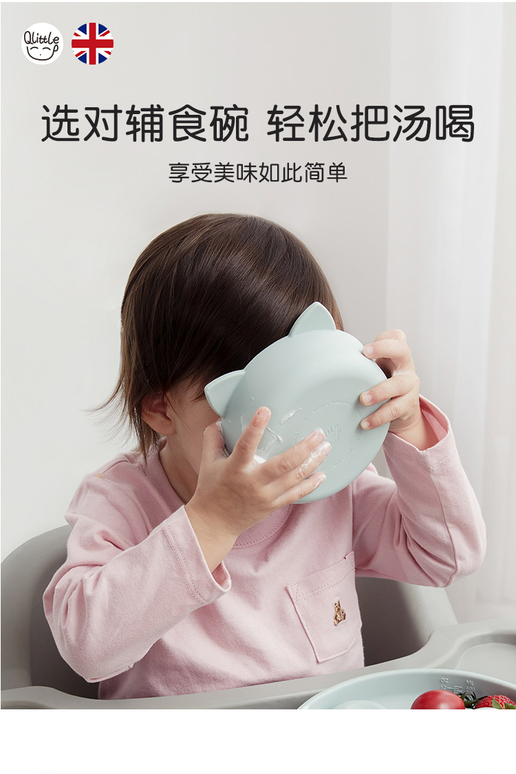 Qlittle硅胶碗 | 宝宝学吃饭萌趣猫硅胶碗滑防摔防烫食品级硅胶猫耳碗 6m+