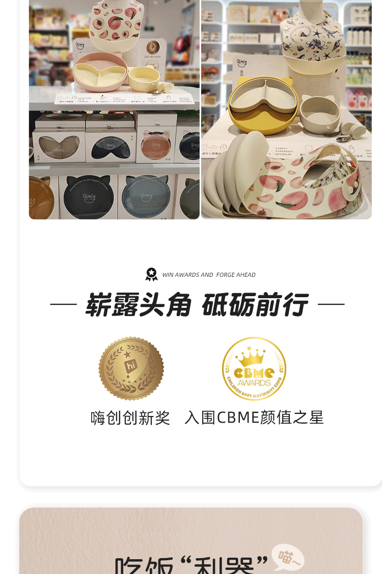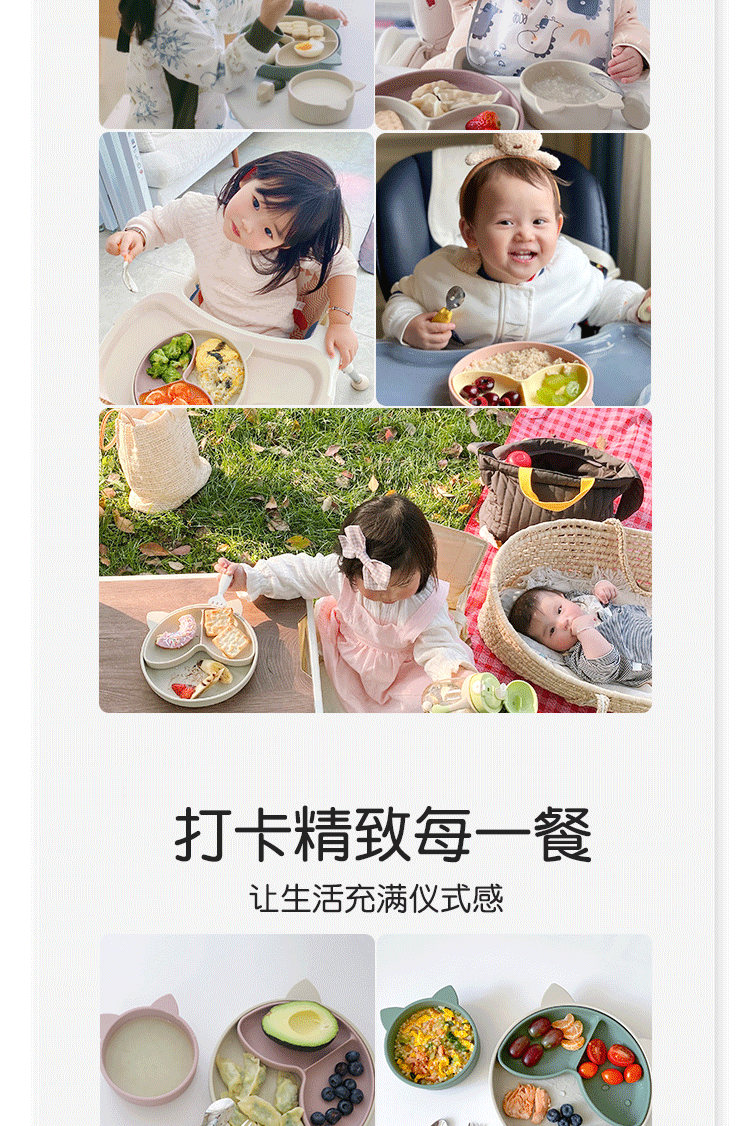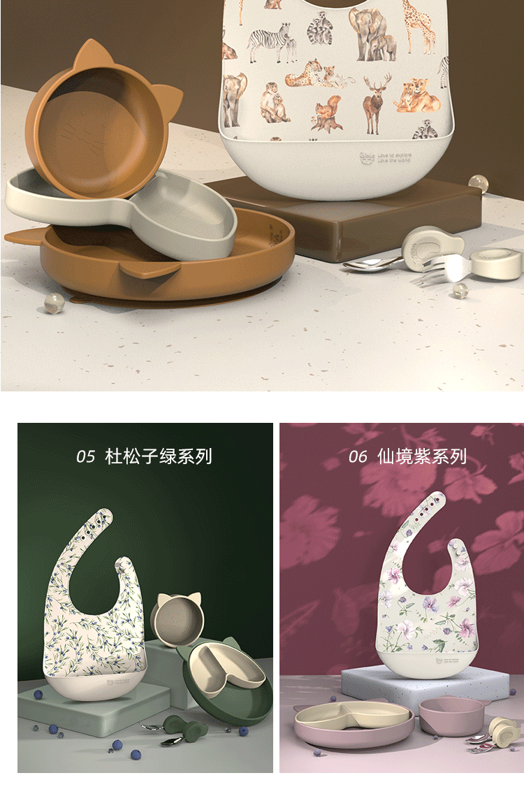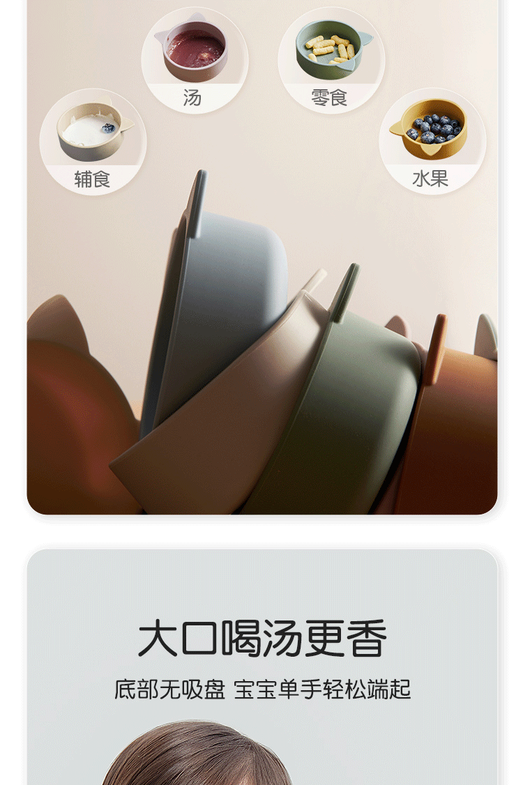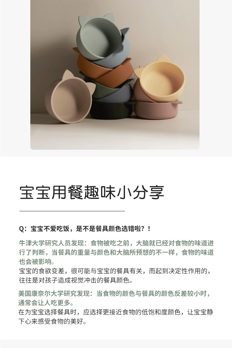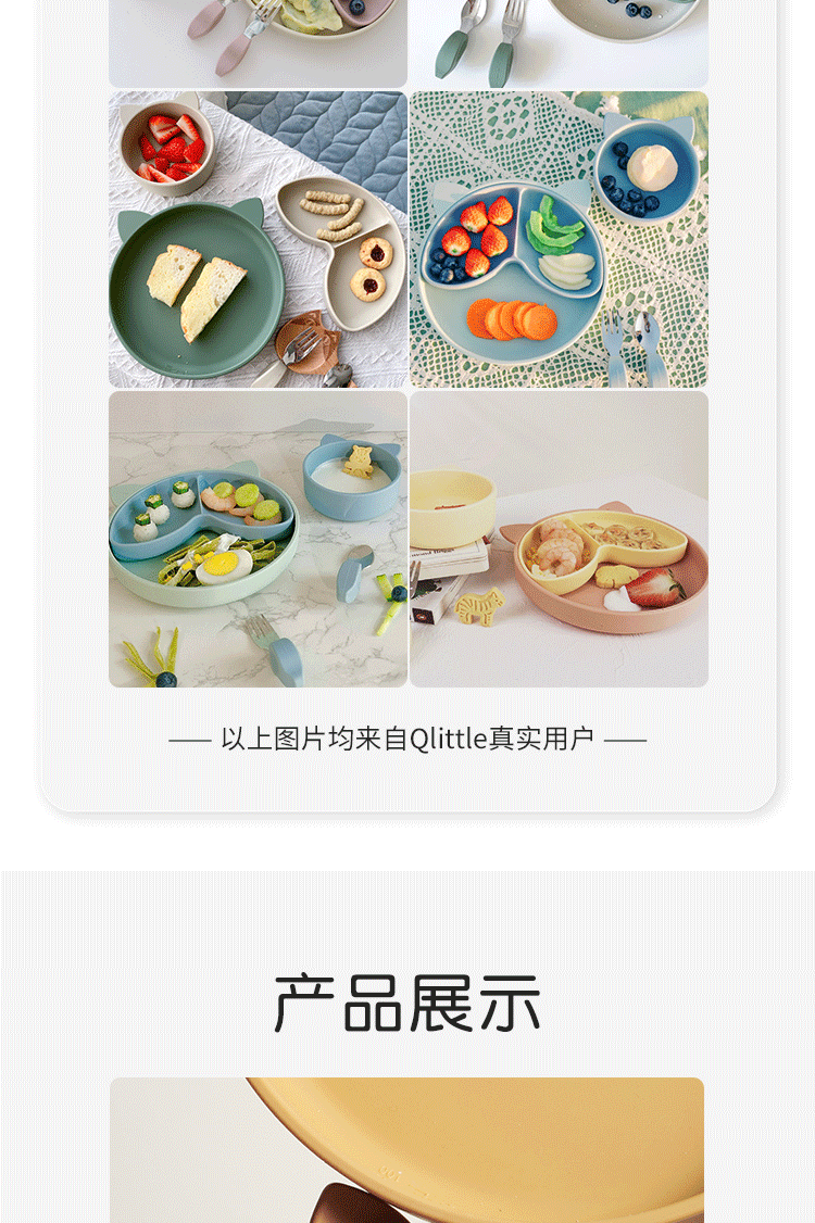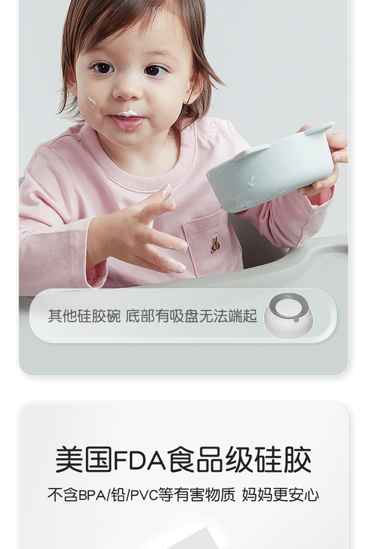 Qlittle硅胶碗 | 宝宝学吃饭萌趣猫硅胶碗滑防摔防烫食品级硅胶猫耳碗 6m+