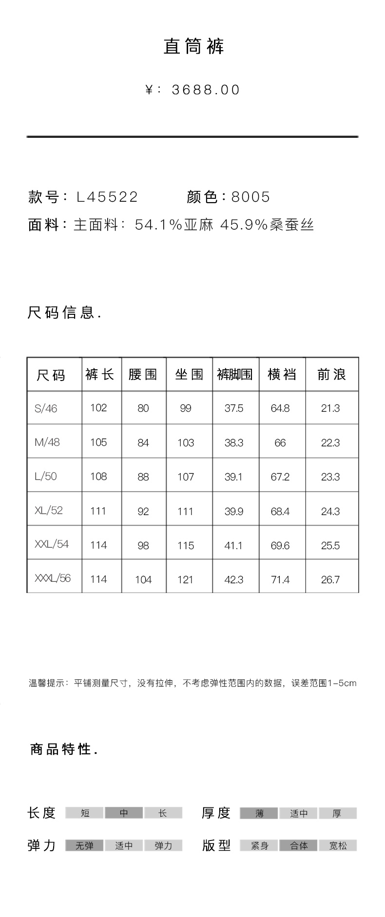 TANGY Collection天意高端商场同款男士休闲裤子L45522