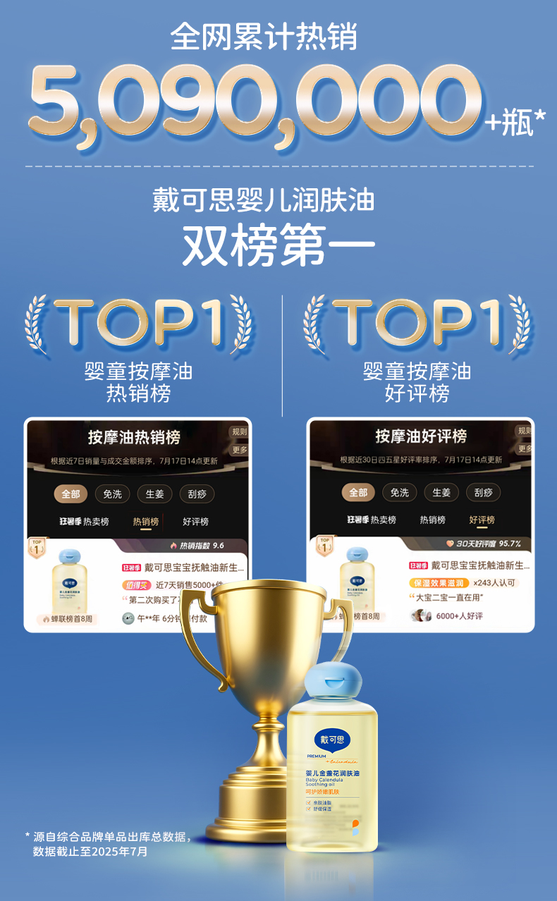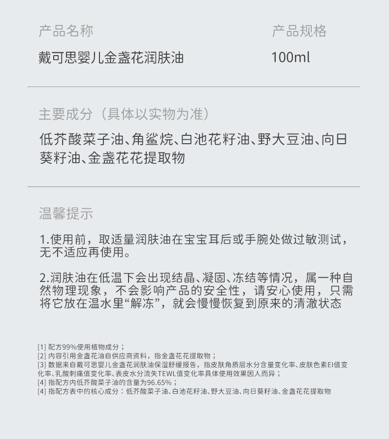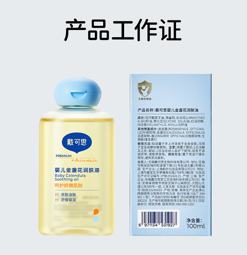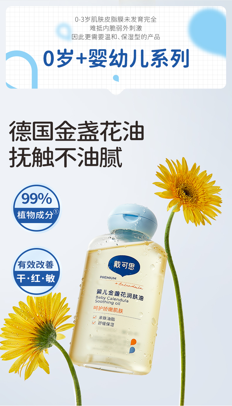 戴可思宝宝抚触油新手婴儿专用倍润全身按摩金盏花润肤油♥