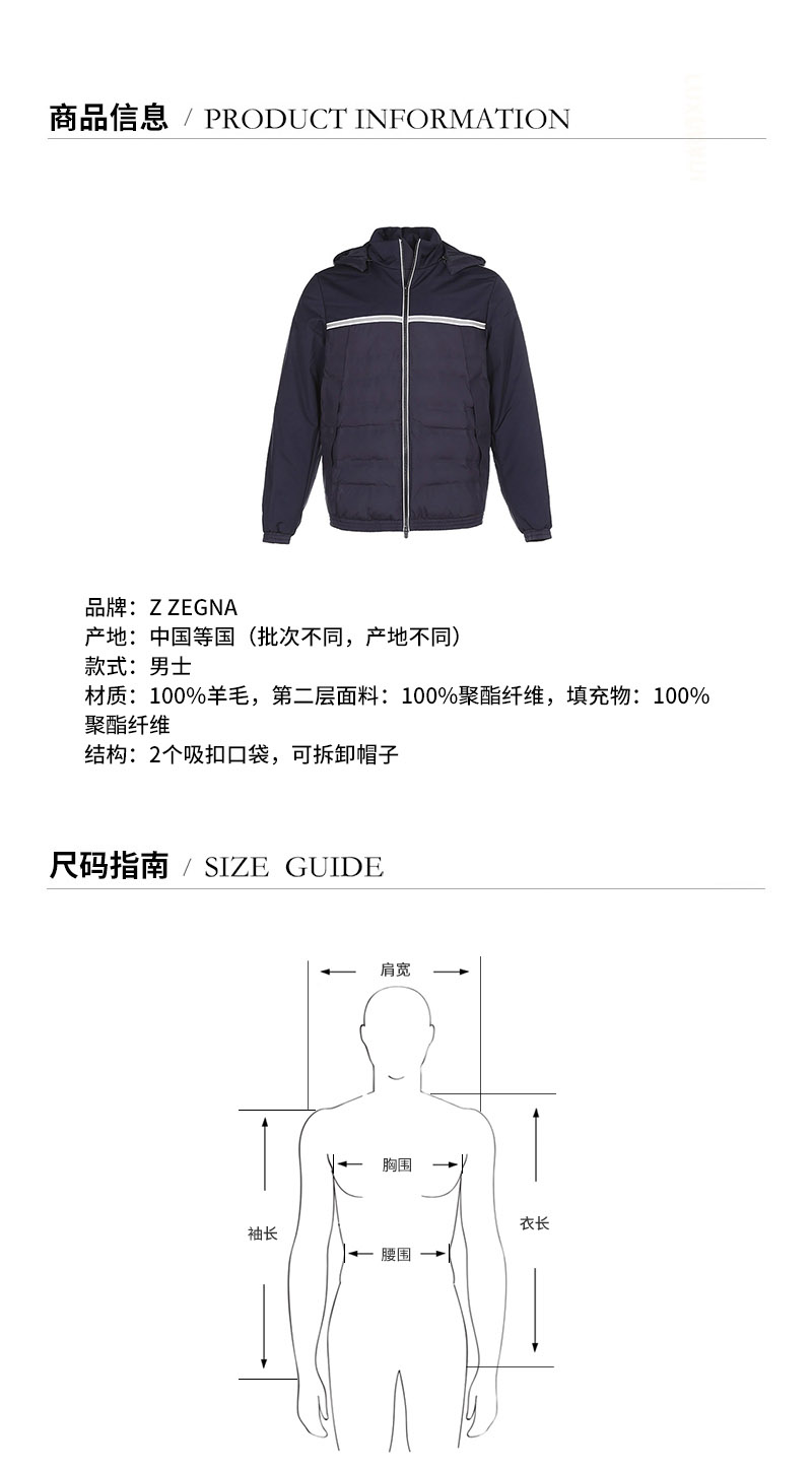 Z ZEGNA/杰尼亚 男士夹克 男士羊毛/聚酯纤维连帽棉服夹克上衣外套 VY057 ZZT076