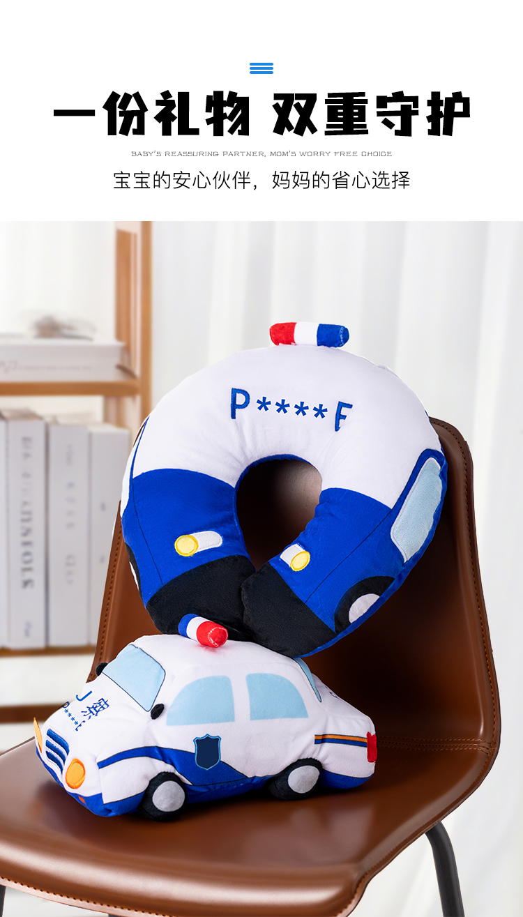 【J车毛绒u形枕】儿童毛绒玩具创意办公午睡枕便携差旅车载颈枕