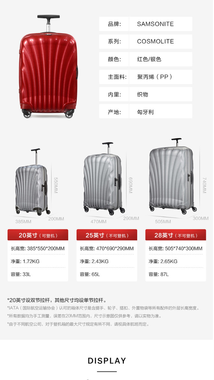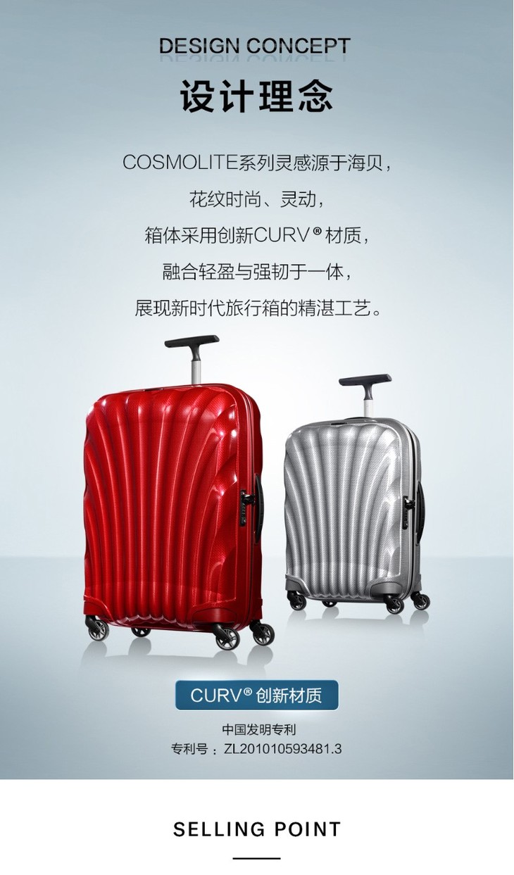 新秀丽经典贝壳箱 红点大奖 创新CURV材质 明星最爱 时尚尖货 V22