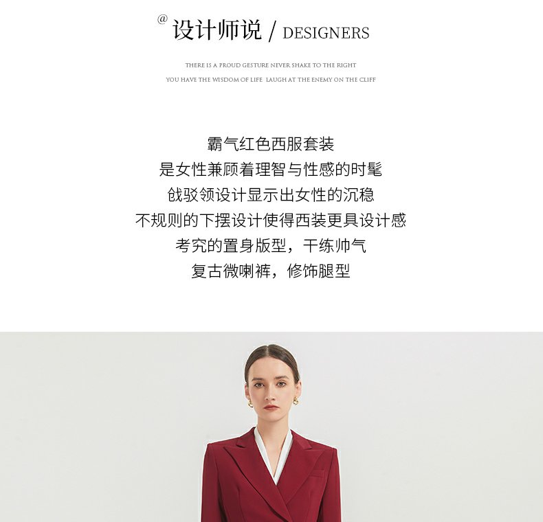 IWY/红色阔腿裤西装套装女秋冬高端职业装气质女神范播音主持上镜装OLC11358+P31358