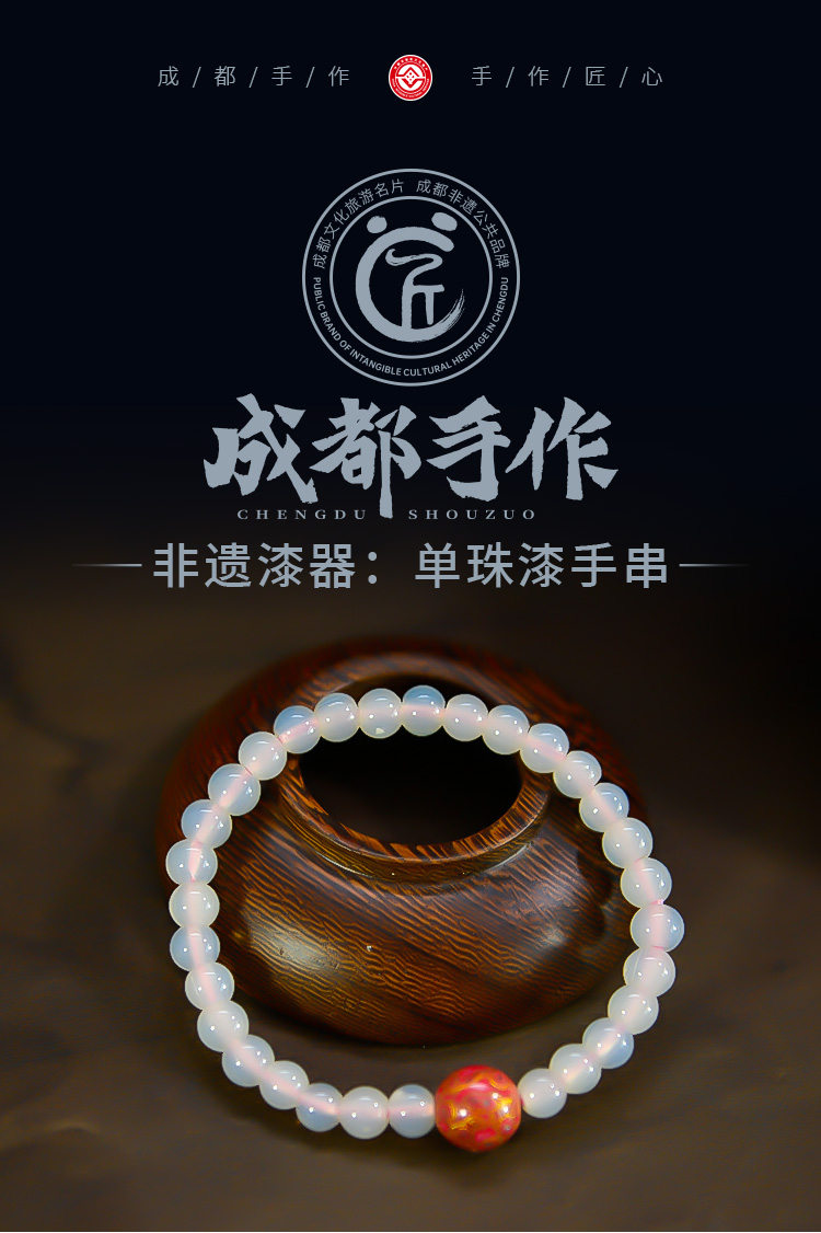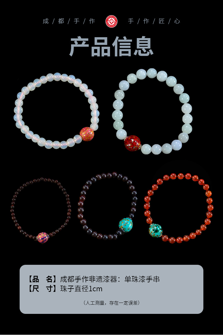 成都手作非遗漆艺单珠手串 民族风单圈手链配饰 四川特色伴手礼