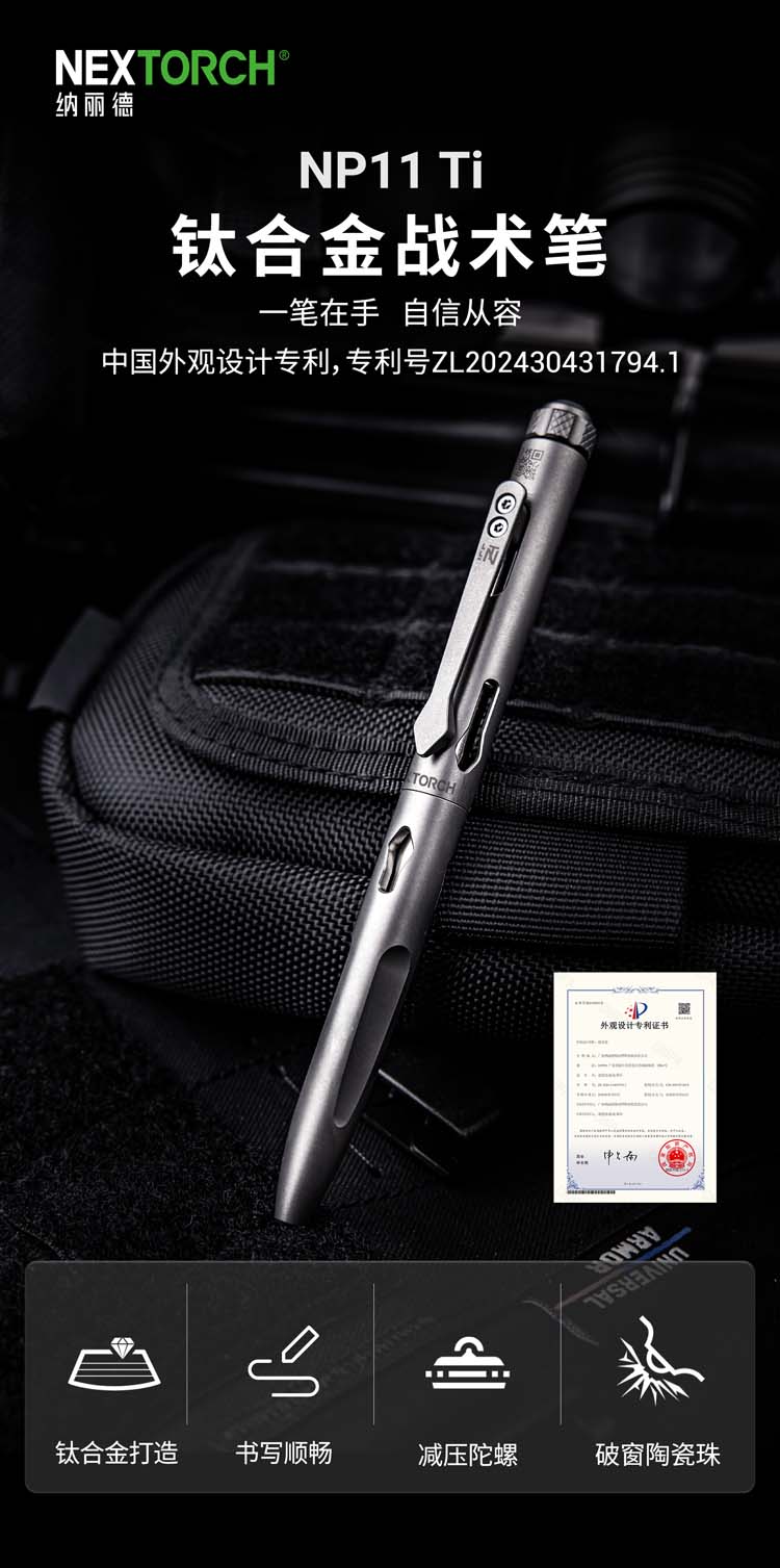 【品牌优选】纳丽德 NP11Ti 陀螺战术笔解压钛合金自卫应急工具破窗随身EDC