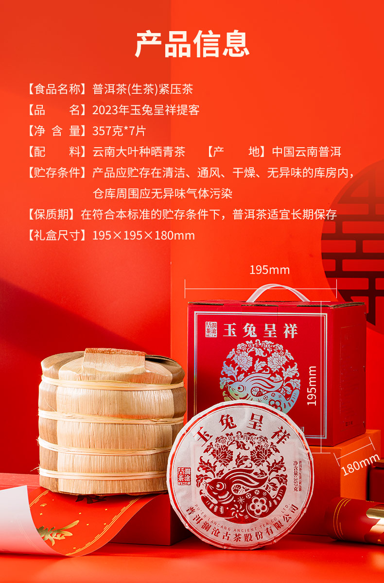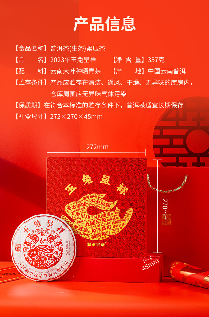 澜沧古茶2023年玉兔呈祥生茶大饼普洱茶生肖饼云南茶叶送礼