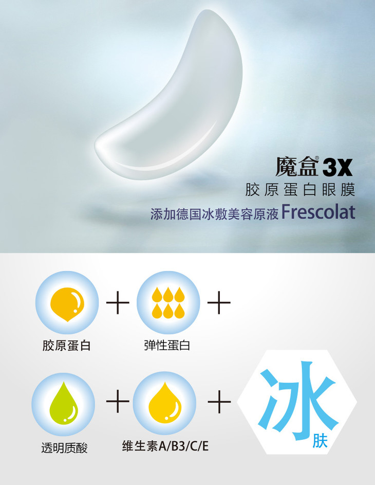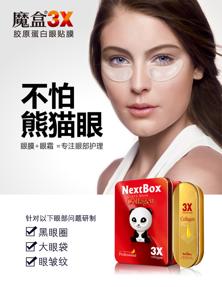 魔盒3X胶原蛋白去黑眼圈眼膜眼贴26对 眼霜黑眼圈眼袋熊猫眼补水DAN细纹
