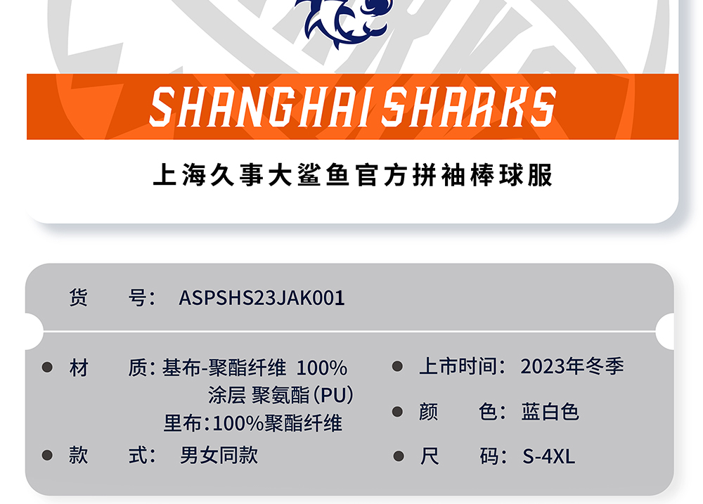 上海大鲨鱼官方商品 | 新主场棒球服拼色棉服外套秋冬休闲潮流