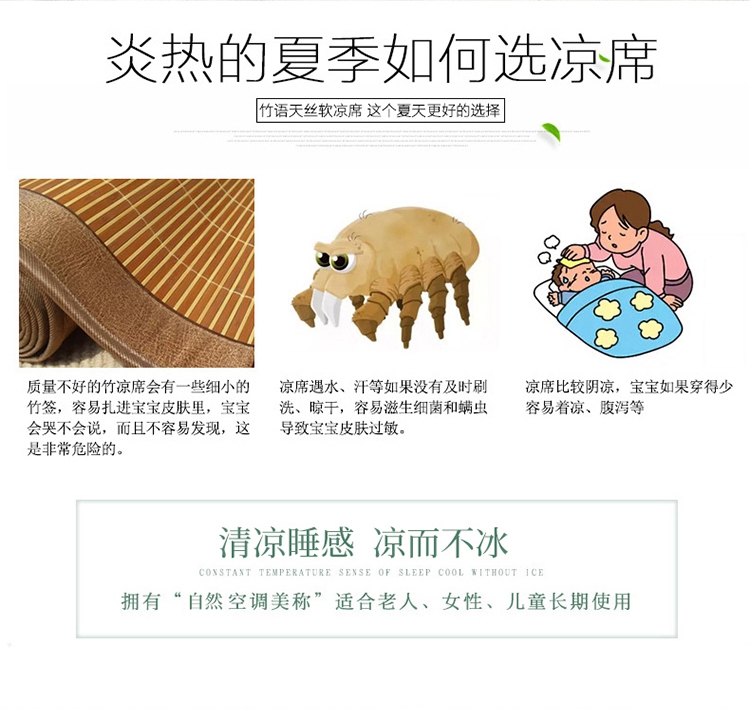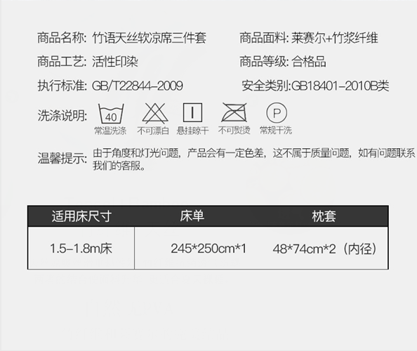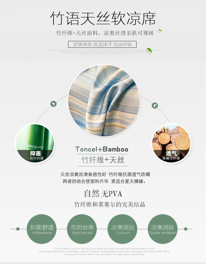 【可机洗】天丝软凉席三件套 凉感竹纤维席床单柔软丝滑莱赛尔天丝夏凉被