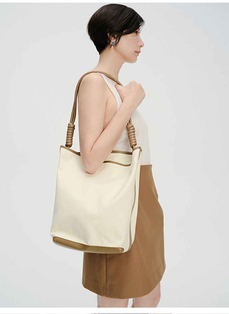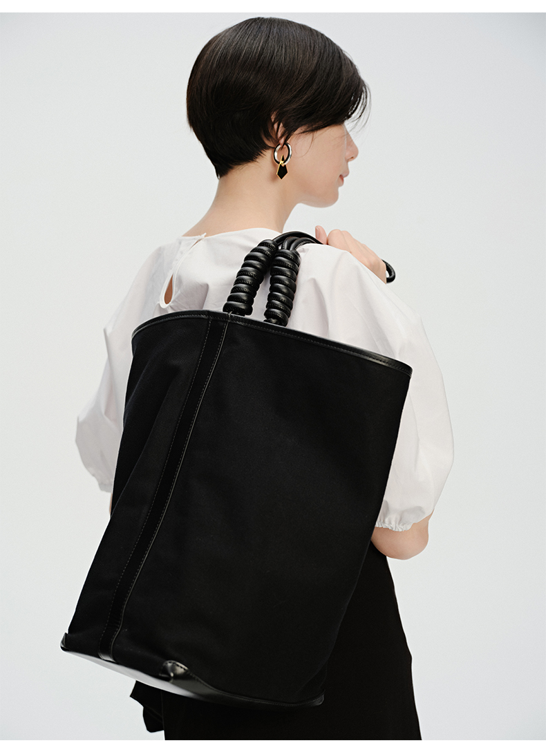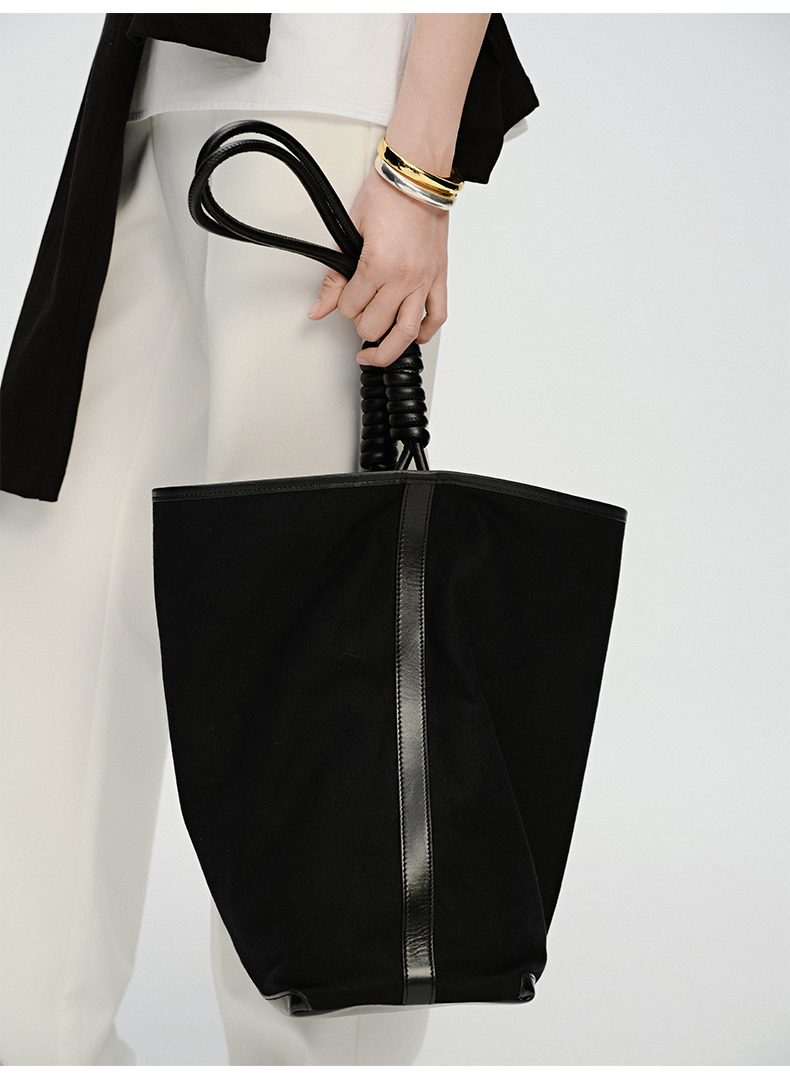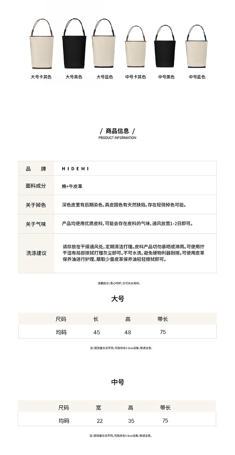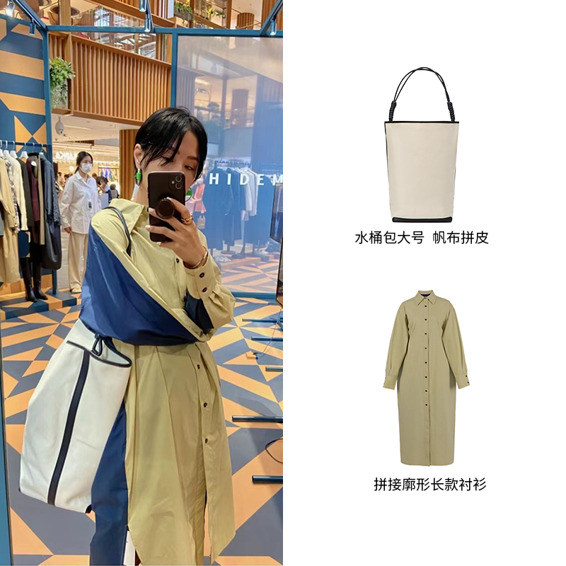 HIDEMI设计感水桶包中号/大号 帆布拼皮