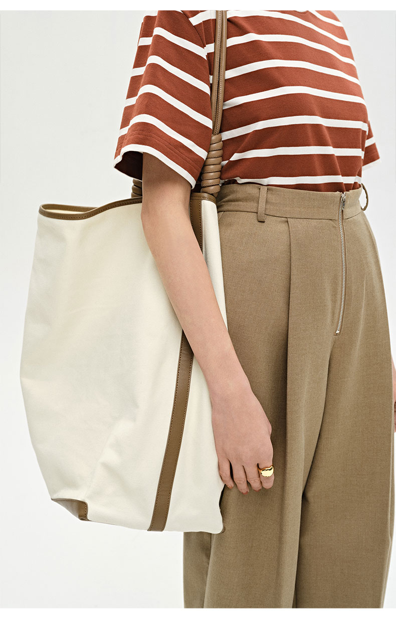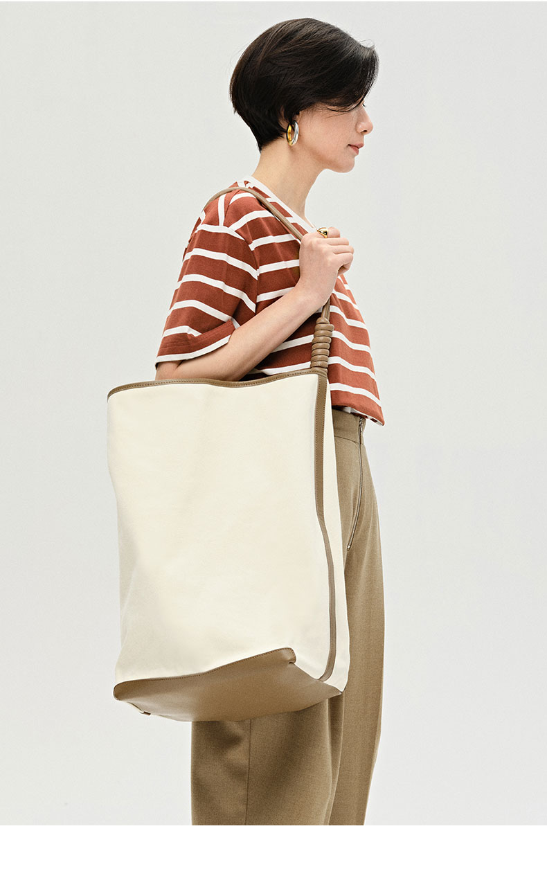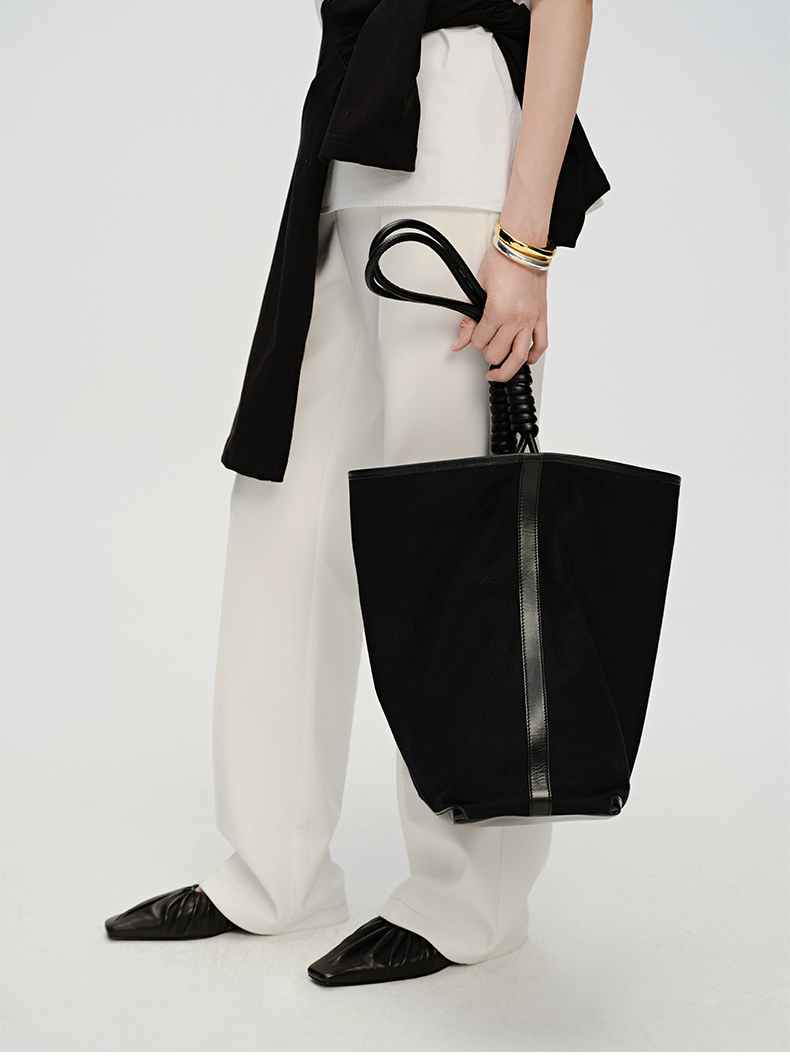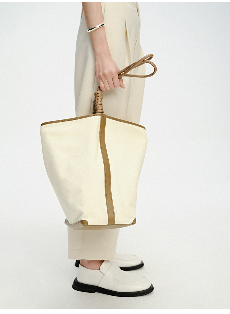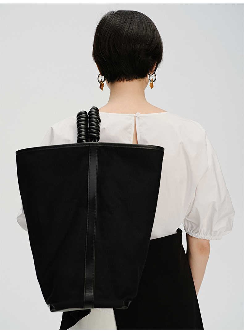 HIDEMI设计感水桶包中号/大号 帆布拼皮