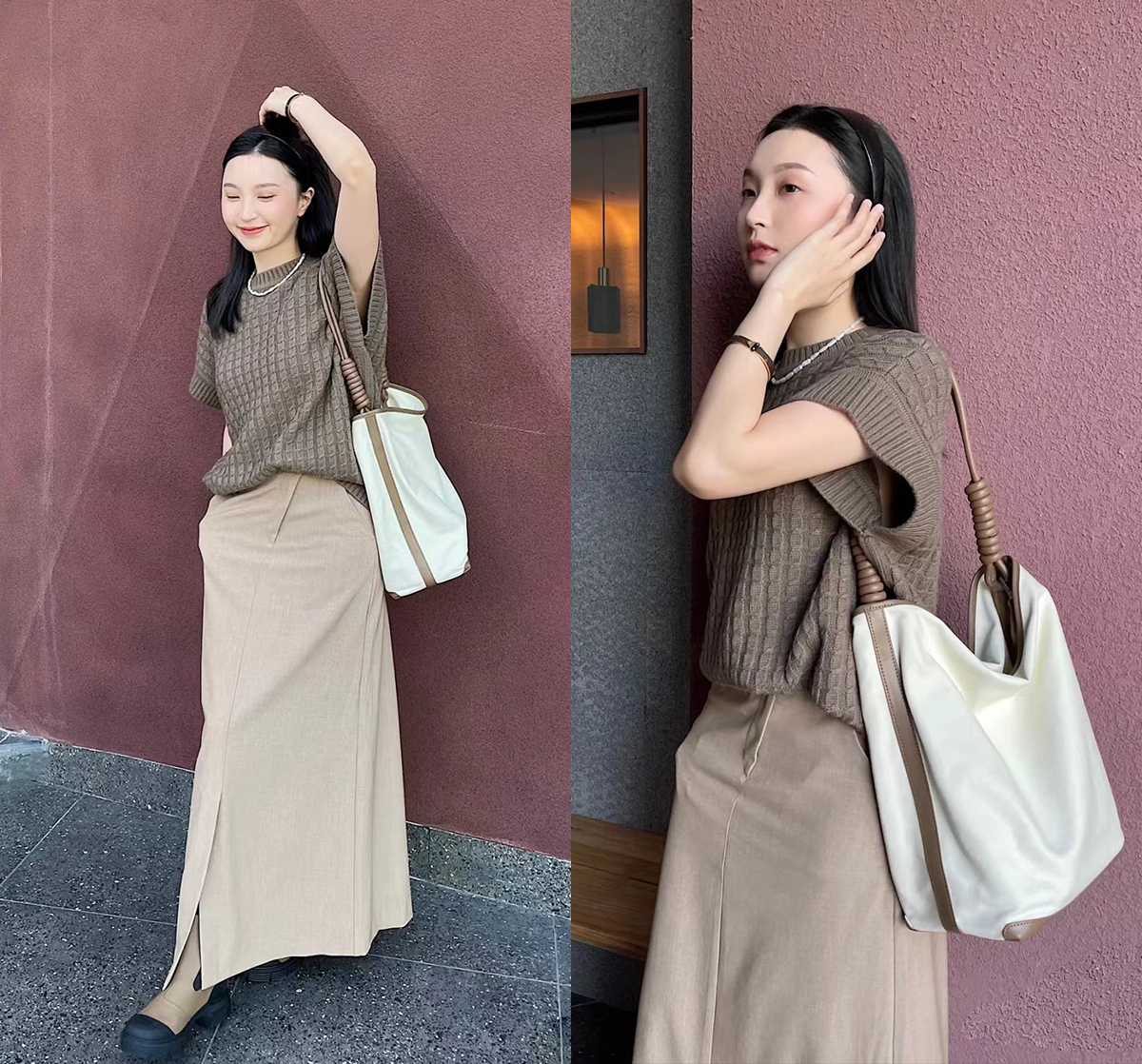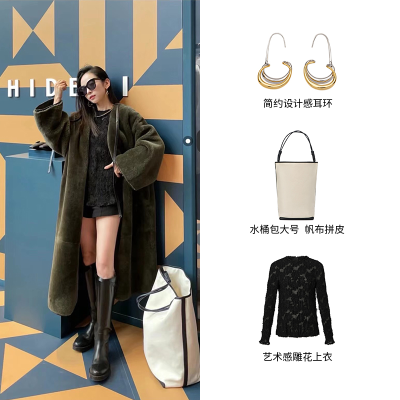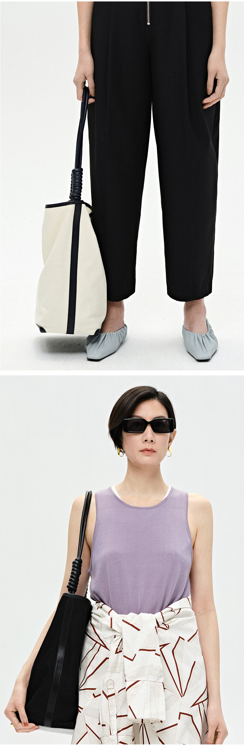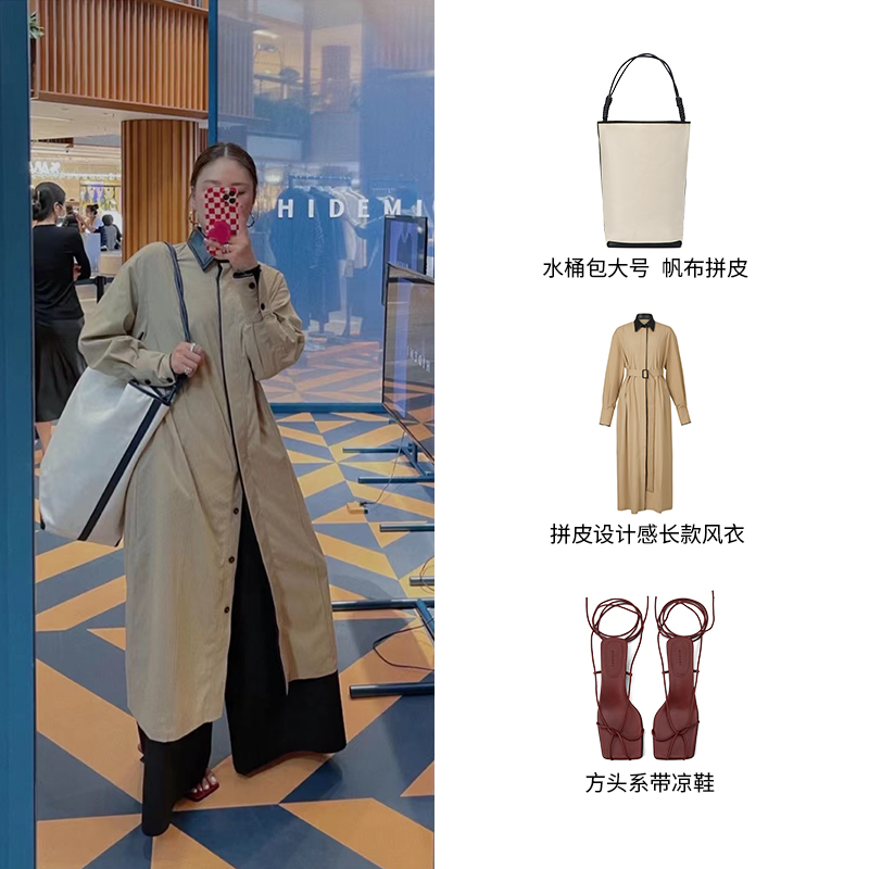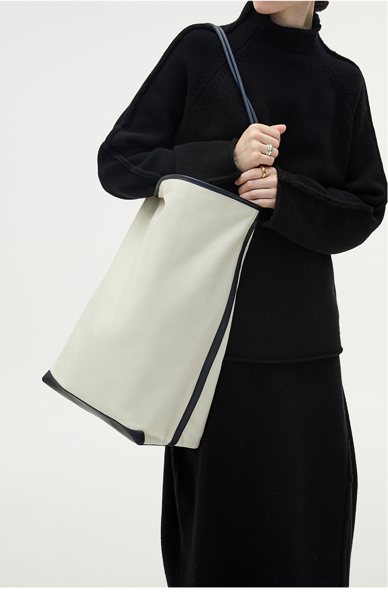 HIDEMI设计感水桶包中号/大号 帆布拼皮