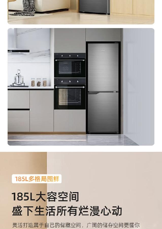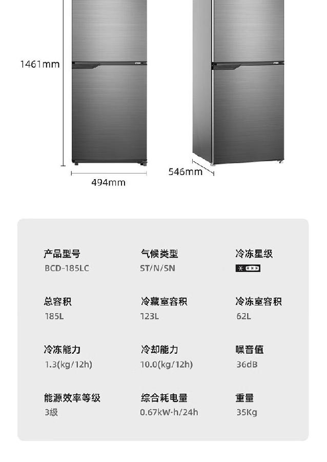 广电优选 美菱BCD-185LC 185升典雅灰两门 直冷冰箱
