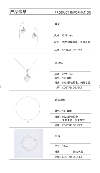 (72小时发货)COSTAR晨露项链耳环S925银白水晶珍珠清新灵动情人节女生生日礼物