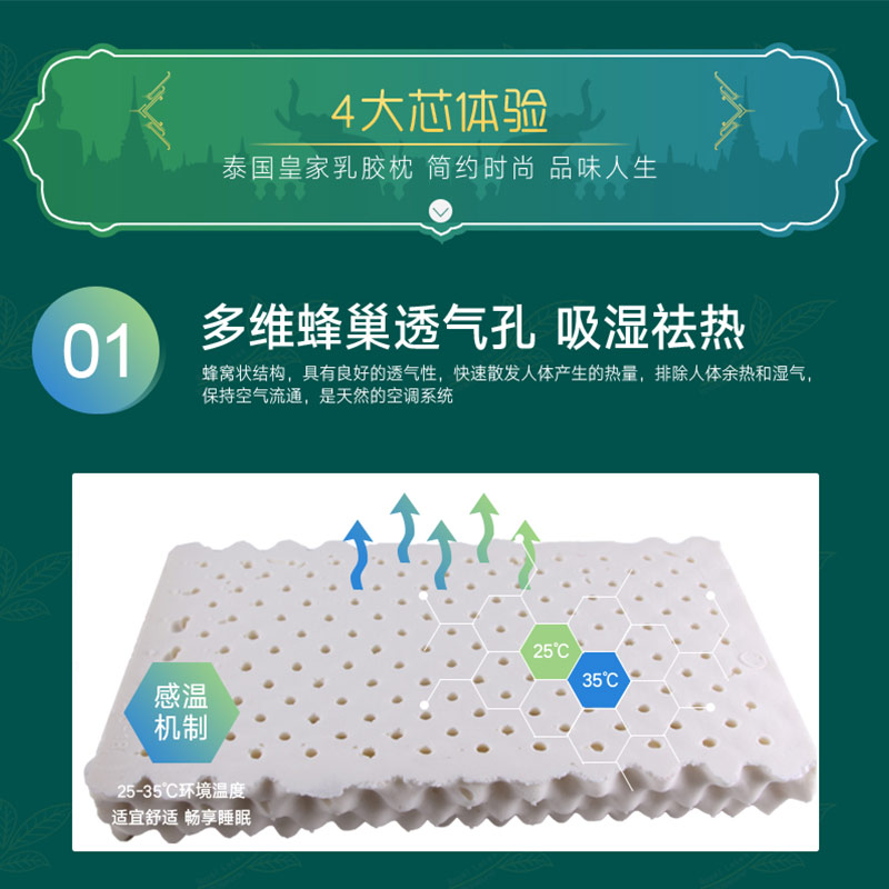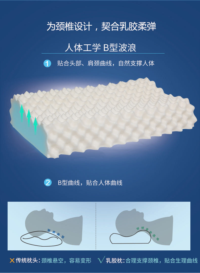 泰国乳胶枕一对,按摩颈椎,透气性好,增进睡眠