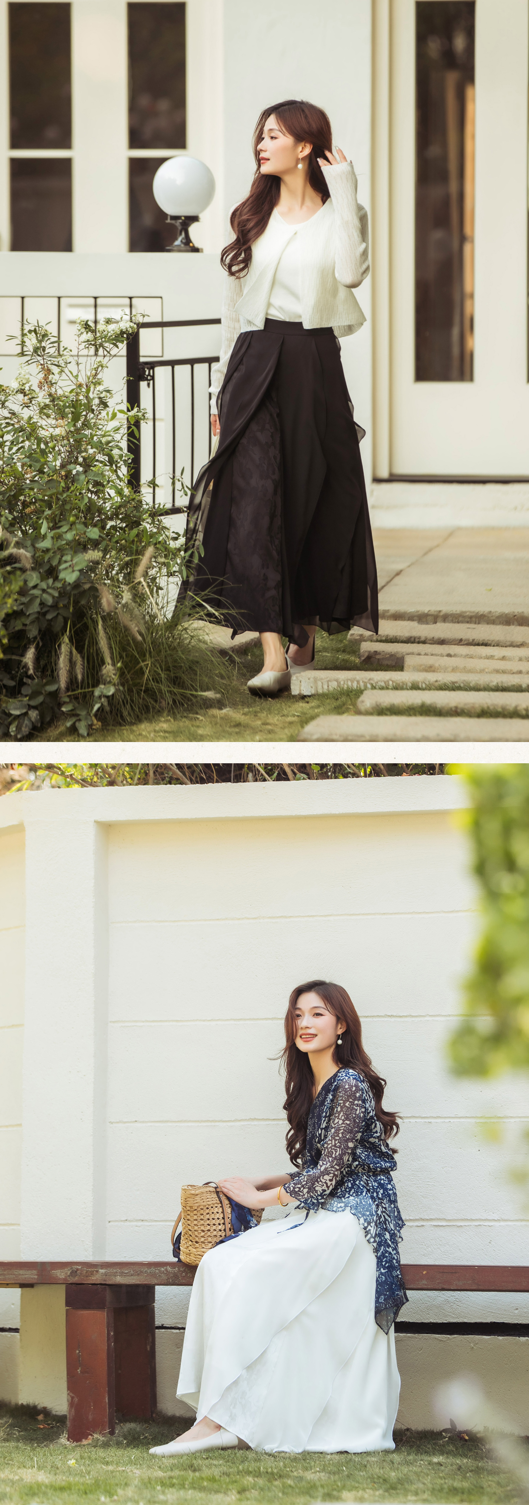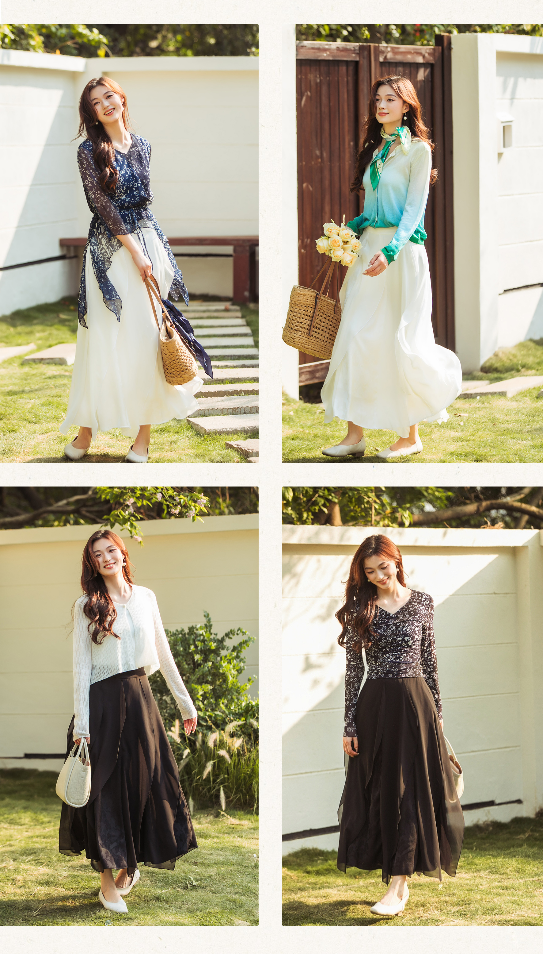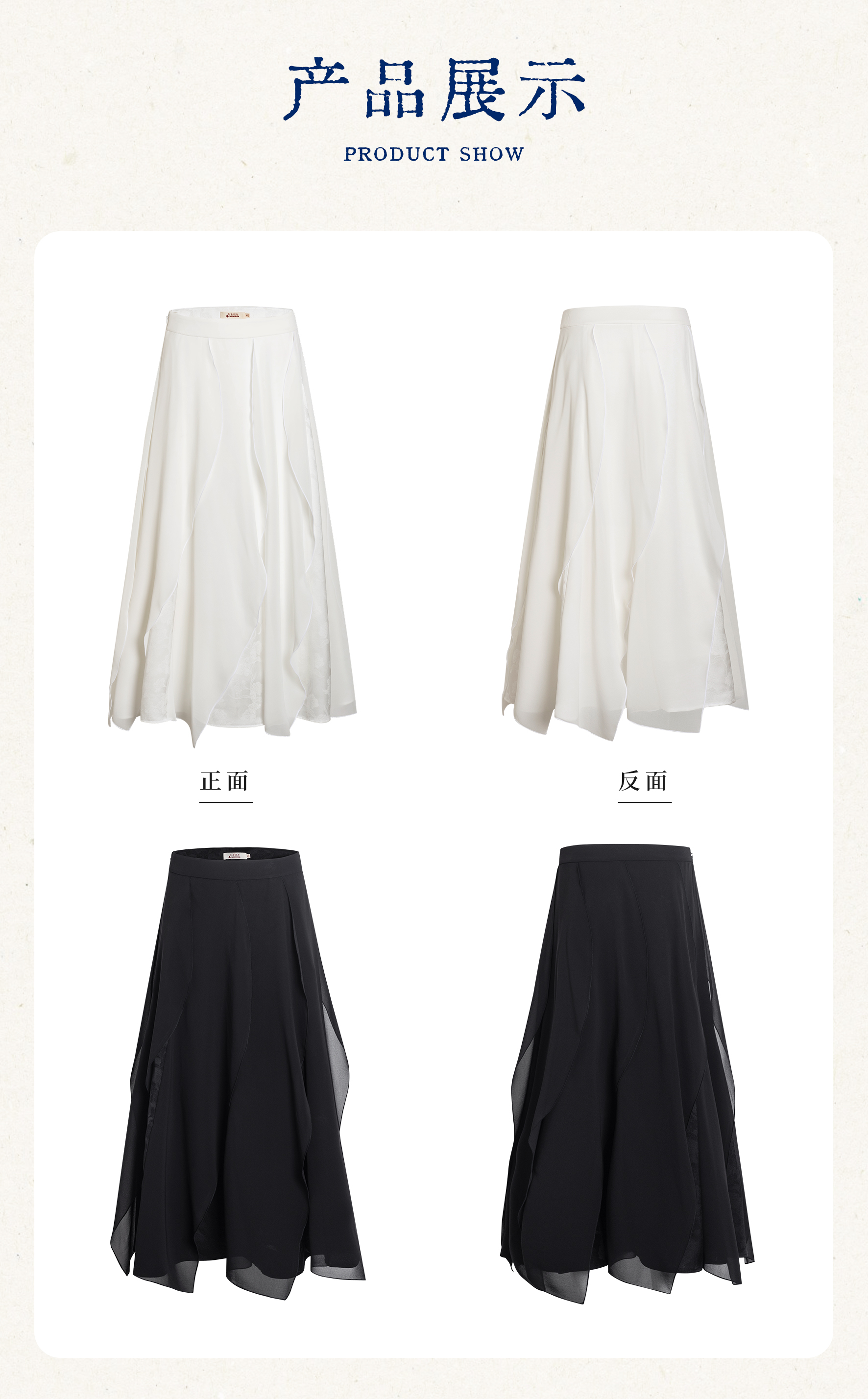 【林栖设计小店】【林栖推荐】(现货)2025年春夏新品简约气质百搭花瓣飞片半身裙女N1952301黑色N1952301B