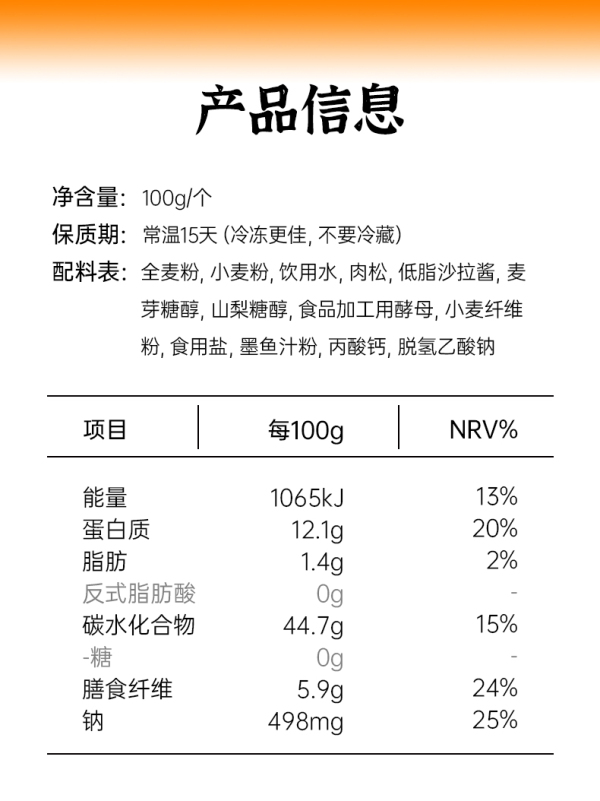 七年五季墨鱼松松小枕包鸡肉松欧包全麦面包早餐代餐品低脂无蔗糖短保产品