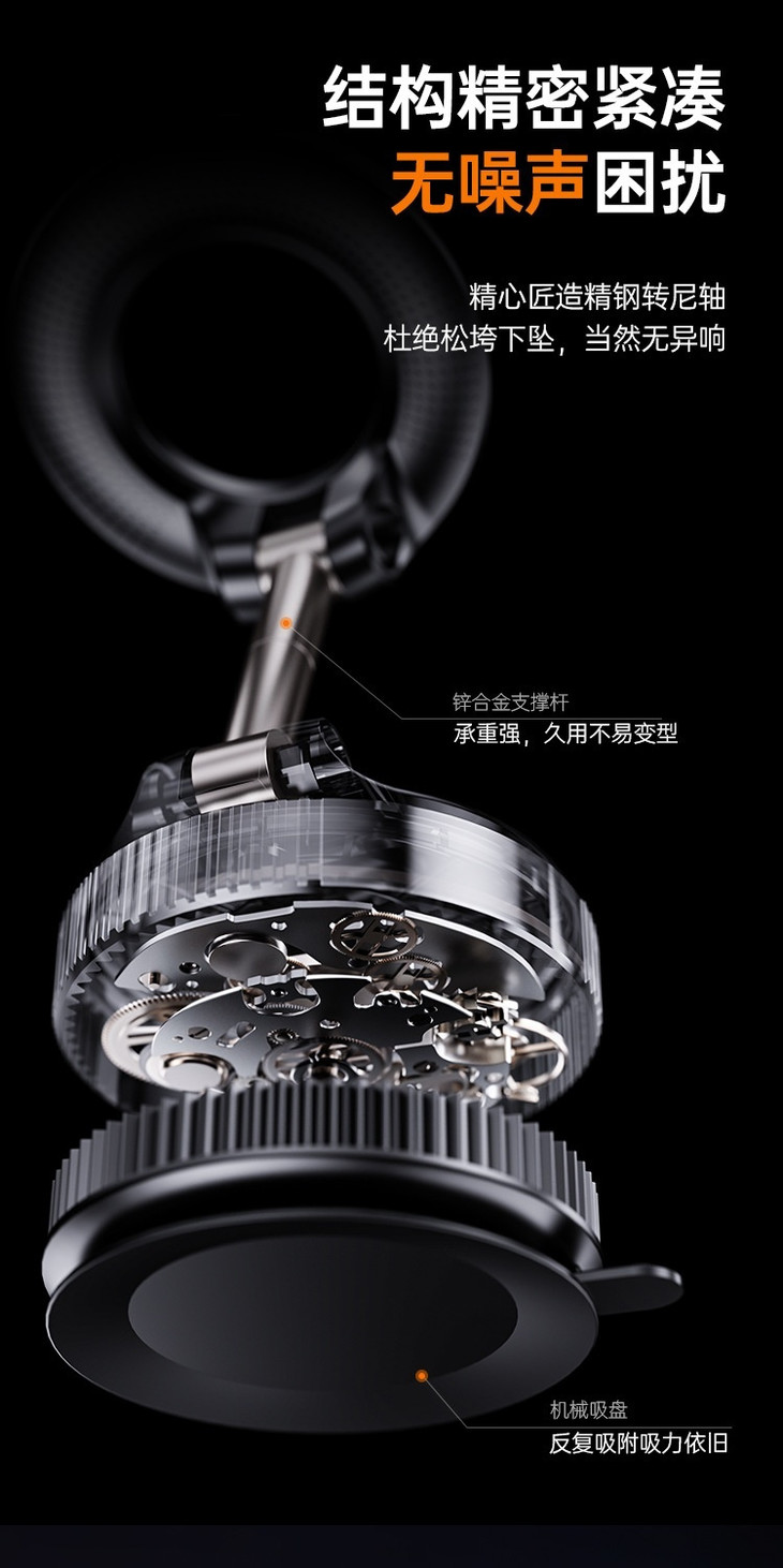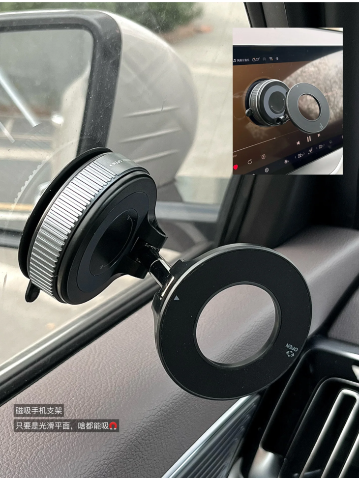 🔺真空吸附盘,光滑位置轻松固定 真空吸附、锁环排气,带“保险”的固定方式 无需充电,旋钮锁定