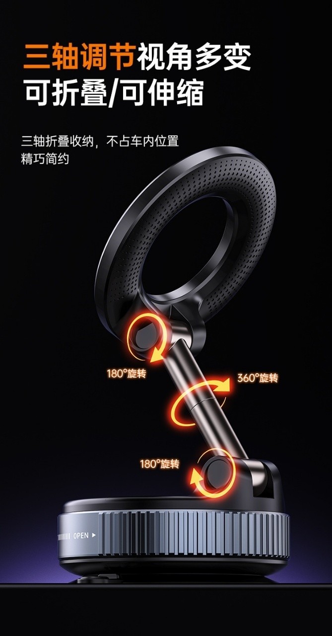 ✅超强稳固 真空吸附+强劲磁吸,车载急刹也无忧 日常使用可“吸”万物 坚固耐用 ✅锌合金支撑臂,坚固耐用抗磨损,抻拉取用五年不坏 ✅360°自由旋转 ✅三轴可调节,横竖屏随意切换,任何角度完全不挑!