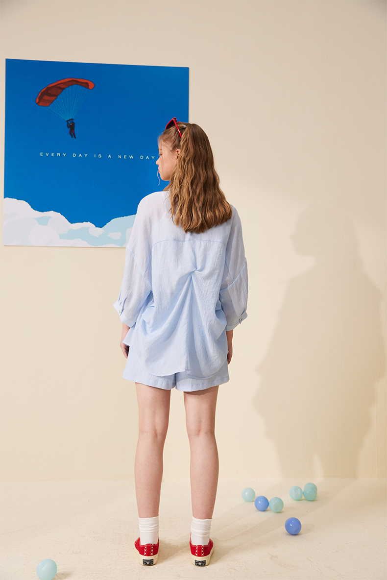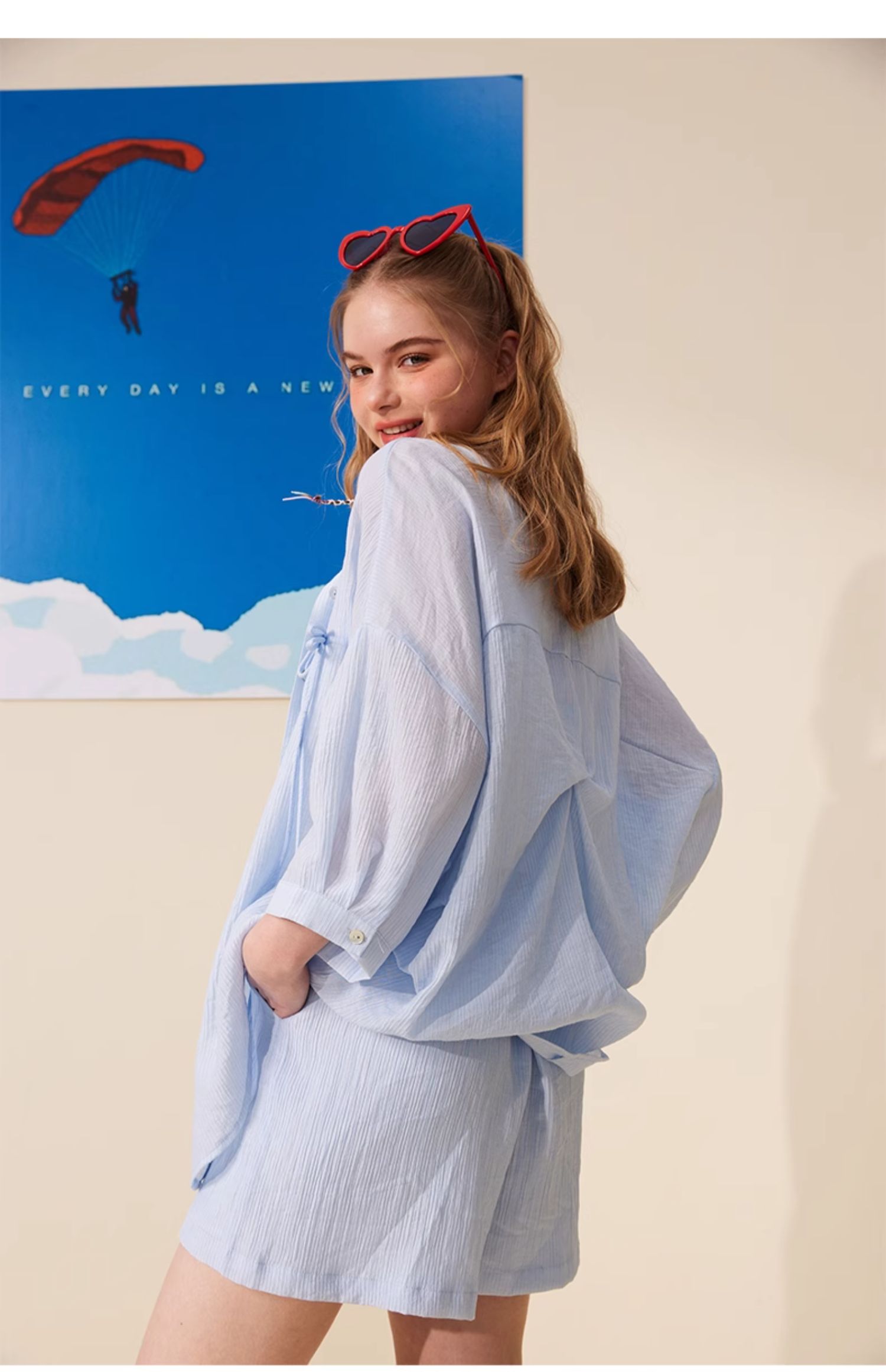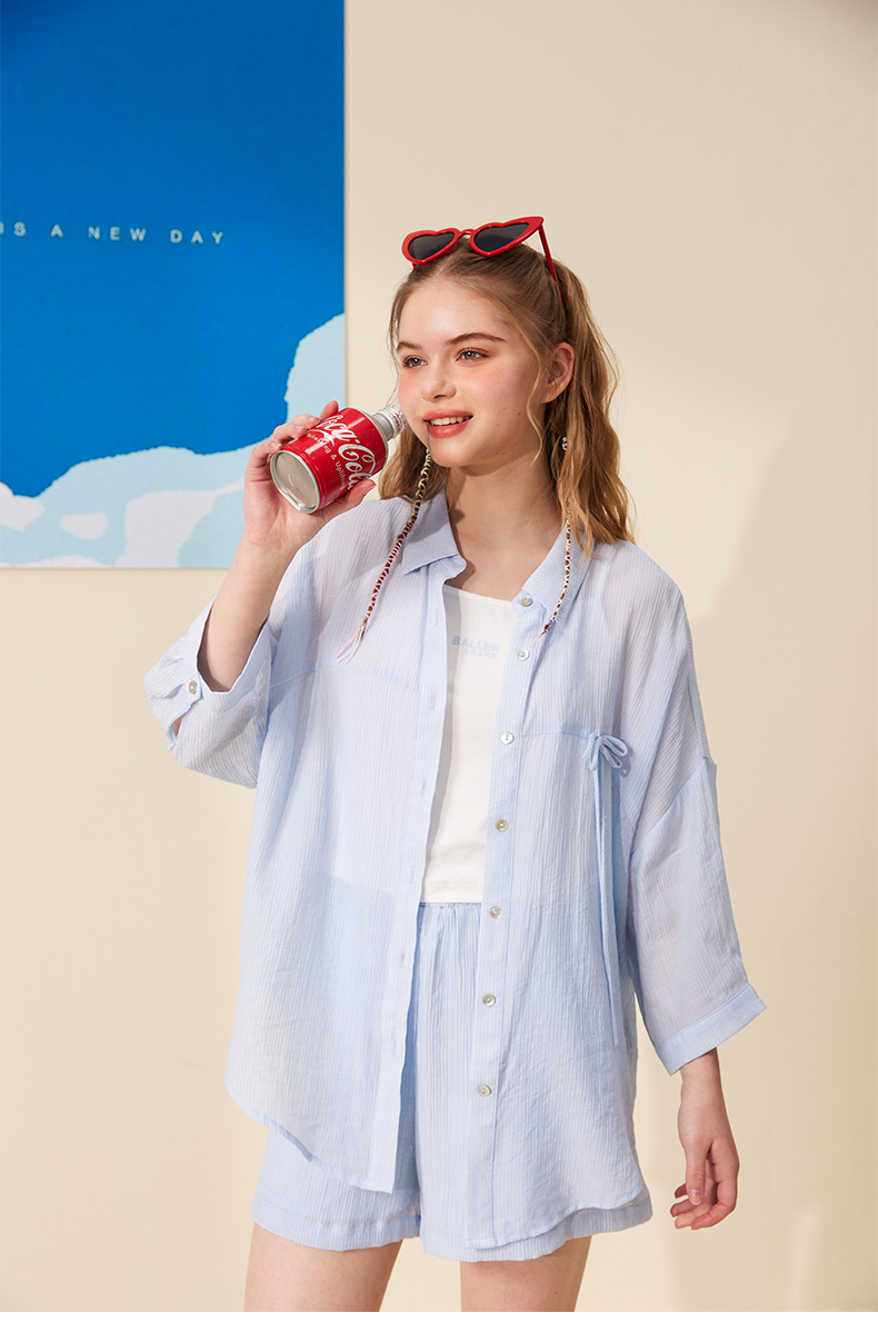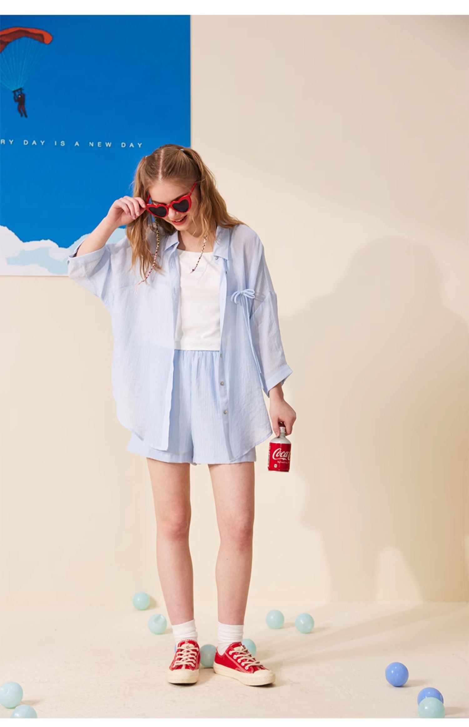 女装吊带背心+中袖衬衫+松紧腰短裤三件套-123129S3223360