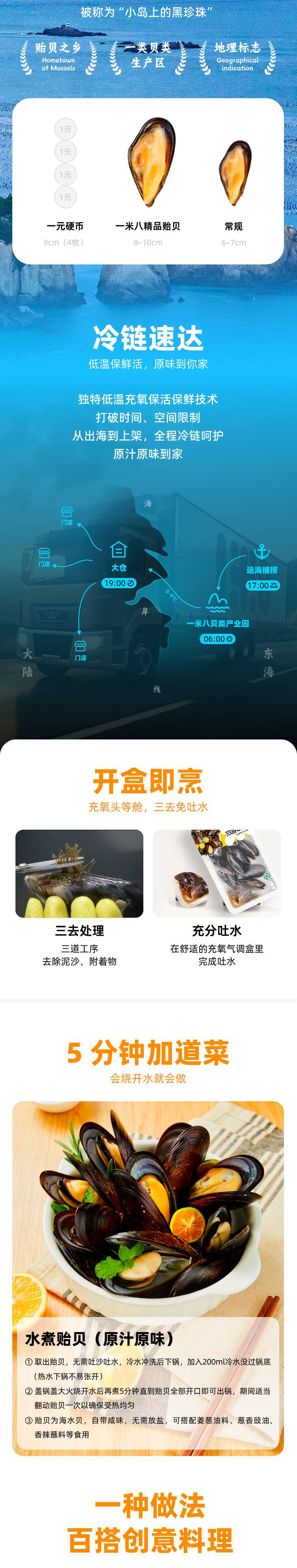 一米八鲜活3年乌金贻贝王 750g/盒