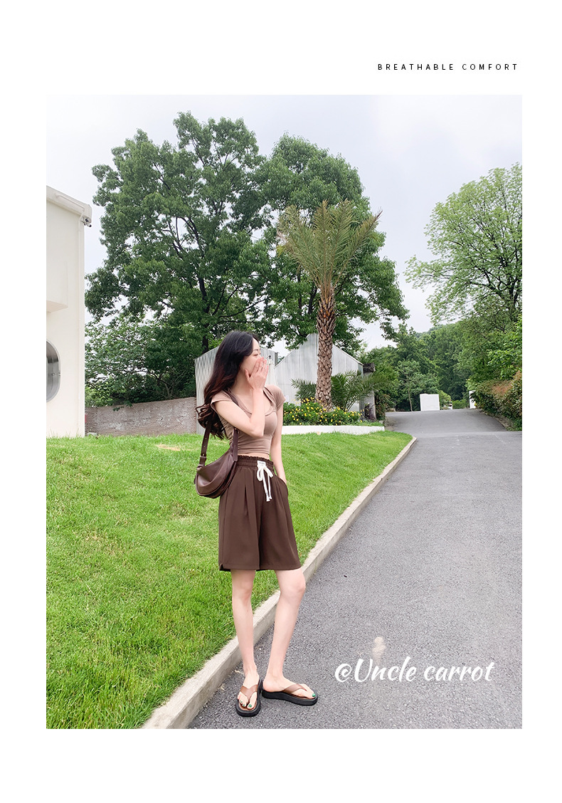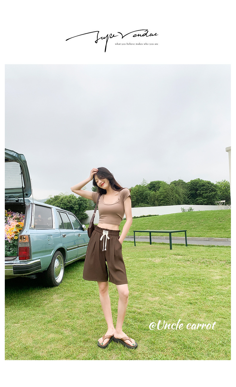 【显瘦显高!西装阔腿五分裤】花苞腰西装短裤春季女宽松2023新款阔腿高腰a字五分裤休闲中裤子