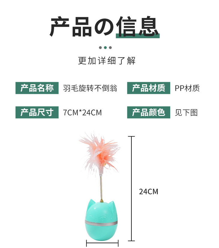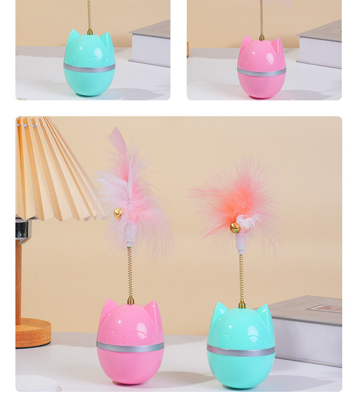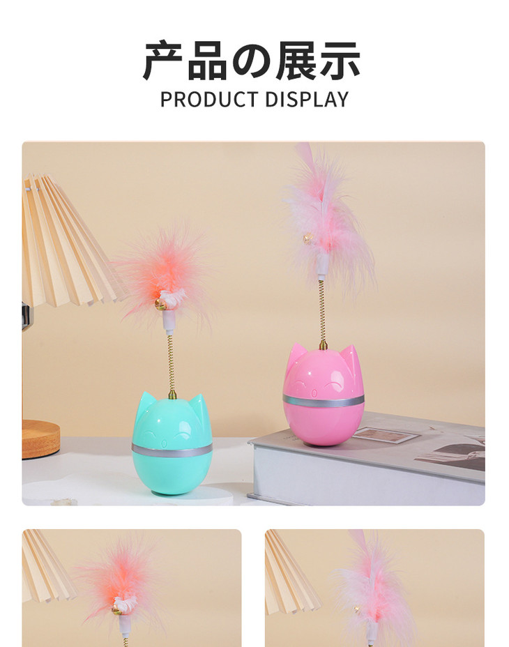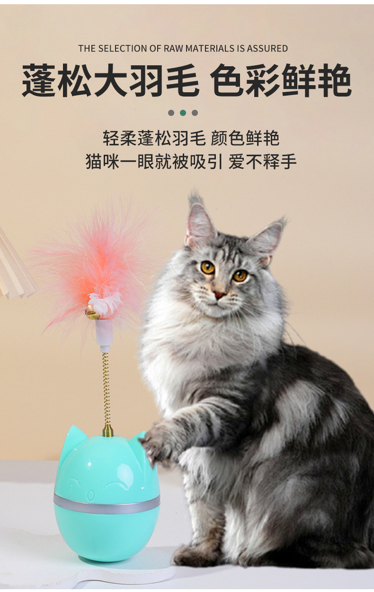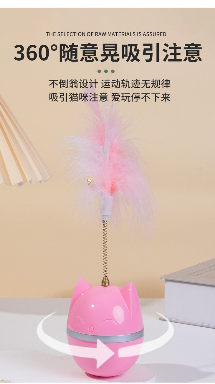 【清脆铃铛❗新鲜羽毛】卡通猫头羽毛不倒翁猫咪玩具 猫猫解压逗猫棒自嗨益智猫玩具。xa