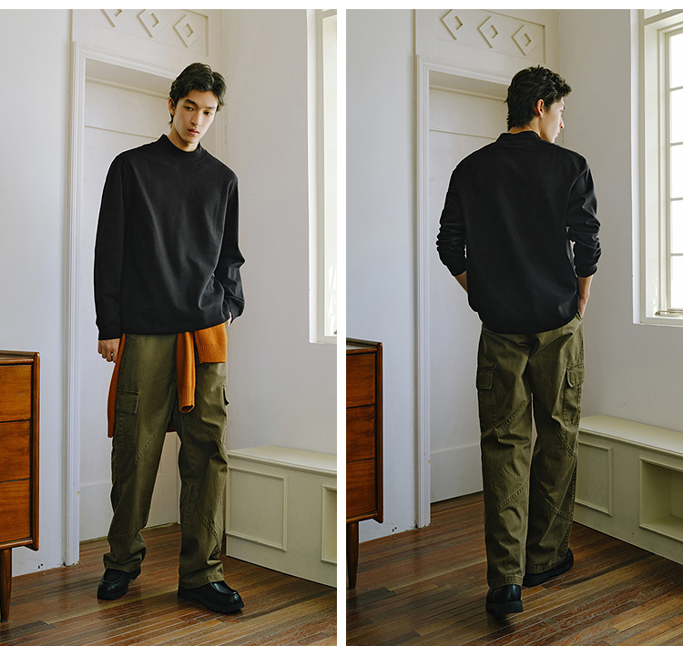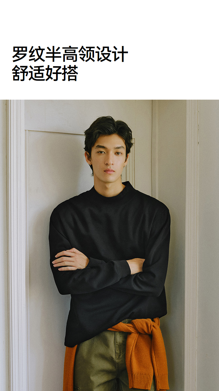森马长袖T恤男士半高领打底衫纯色内搭2025冬季新款上衣基础百搭