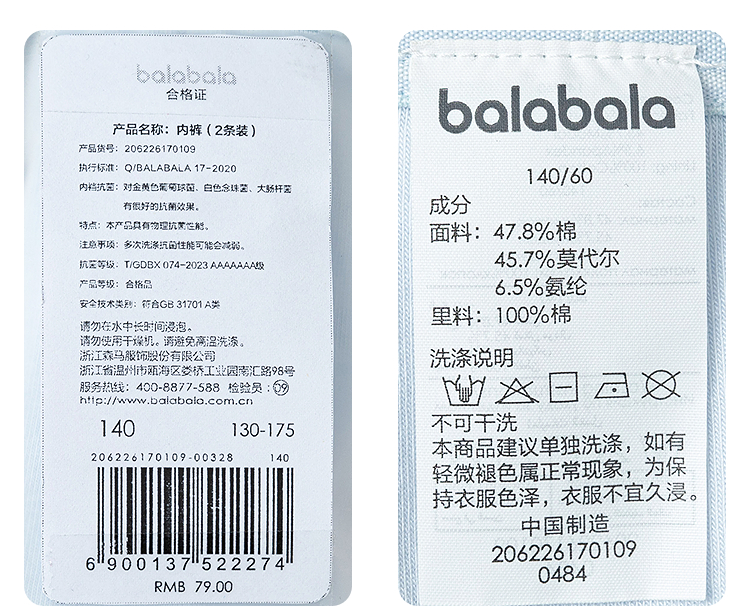 【商场同款】巴拉巴拉男童内裤平角儿童四角短裤中大童抗菌两条装