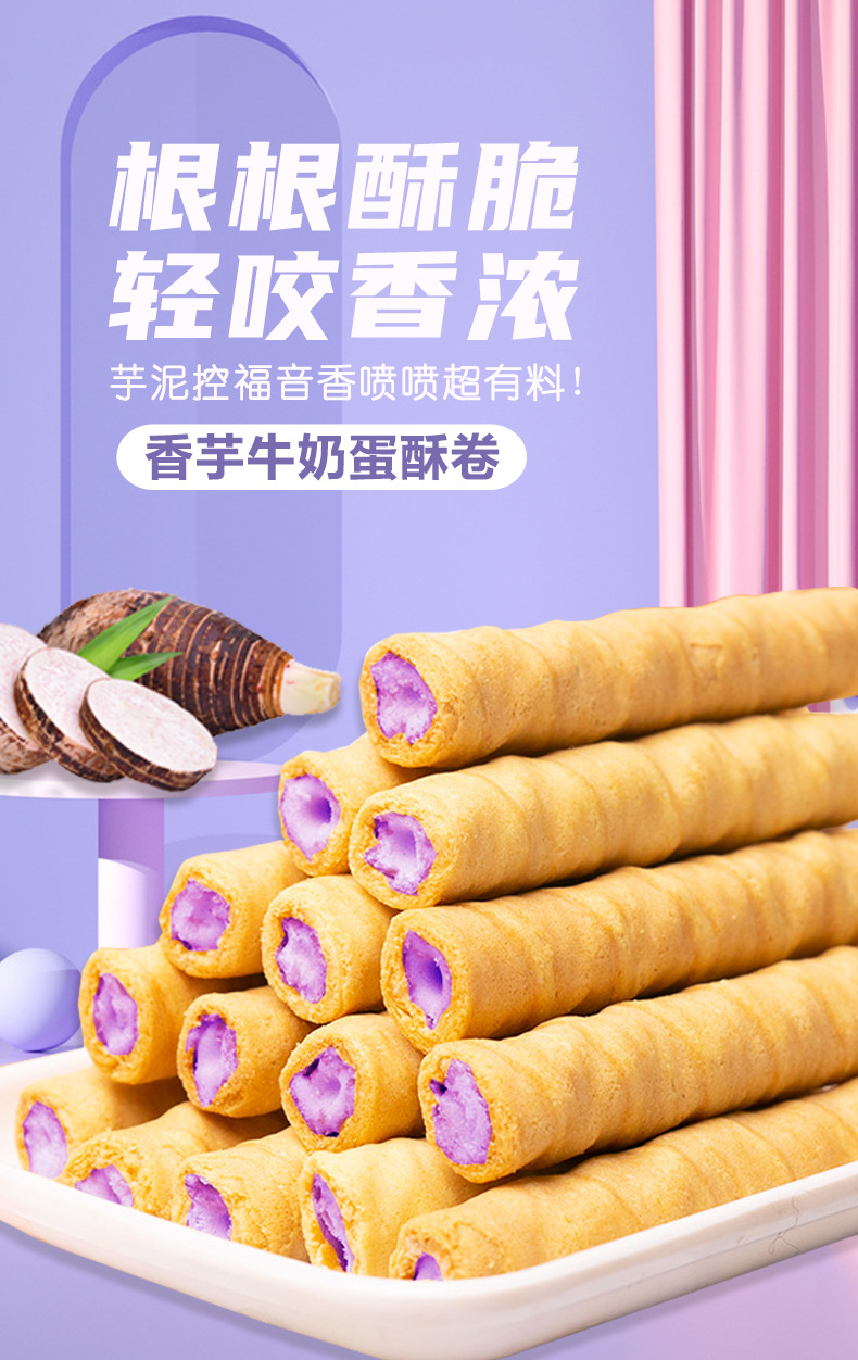 【根根超有料❗香芋牛奶蛋酥卷】芋泥控福音香喷喷超有料,优选好原料,每一卷锁住浓郁蛋香,美味健康无负担,松脆饼干休闲小零食,独立包装网红休闲即食香酥醇香L