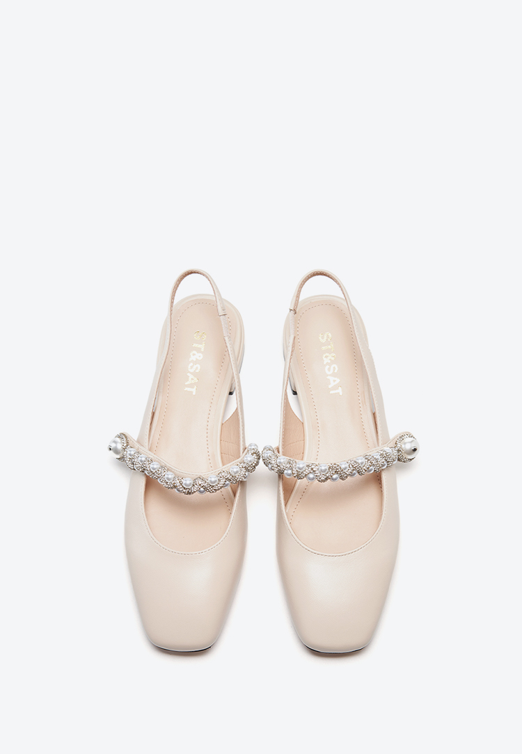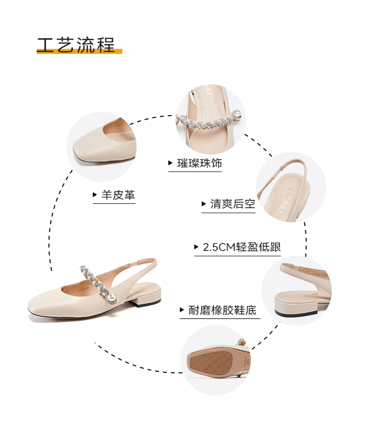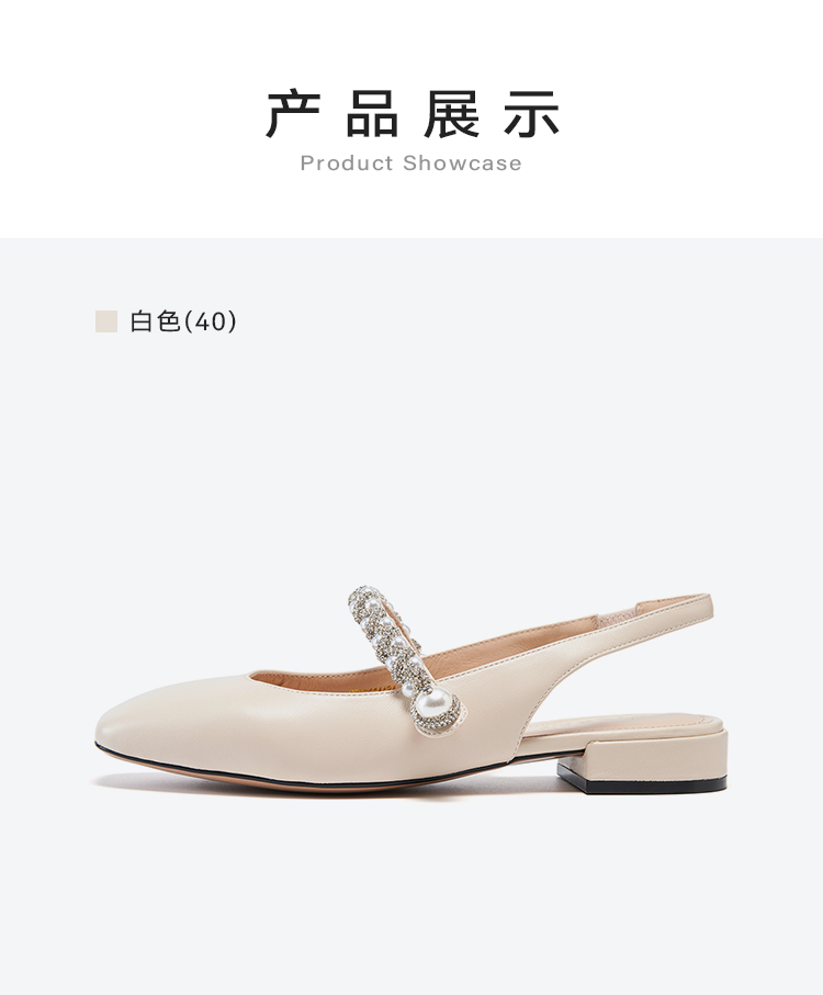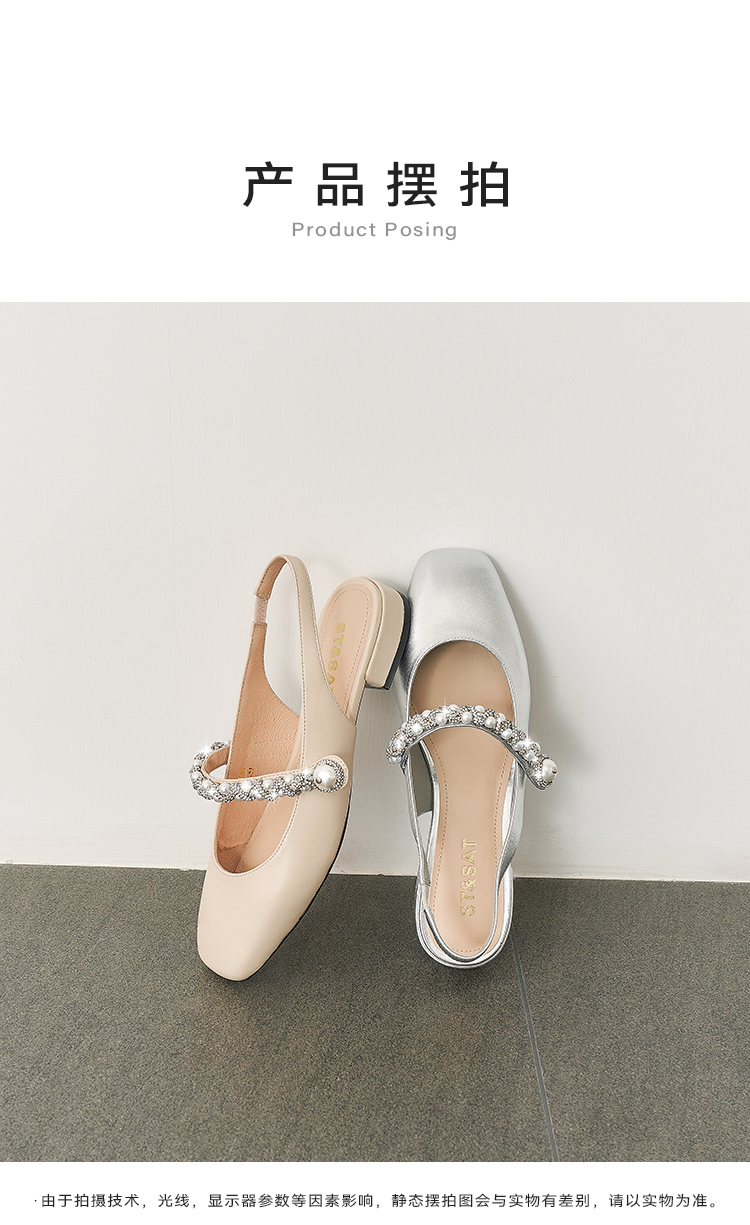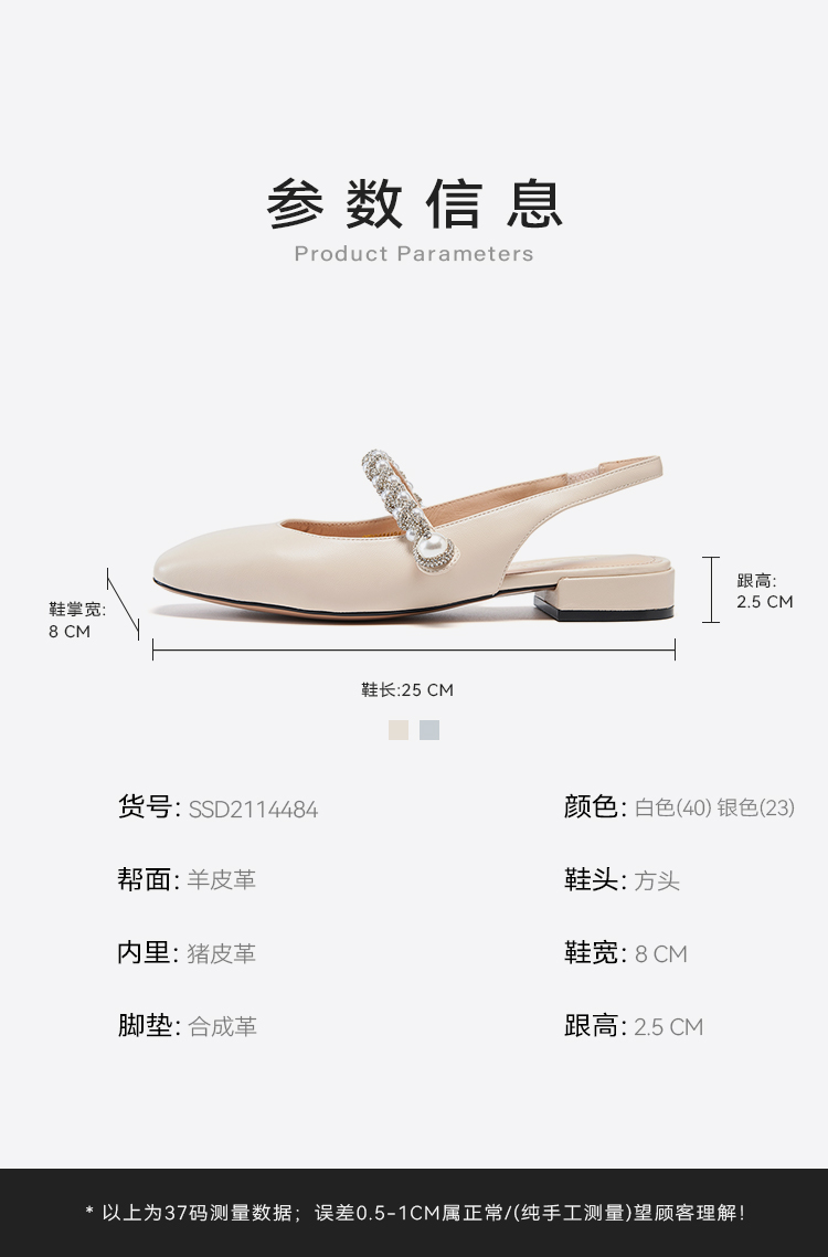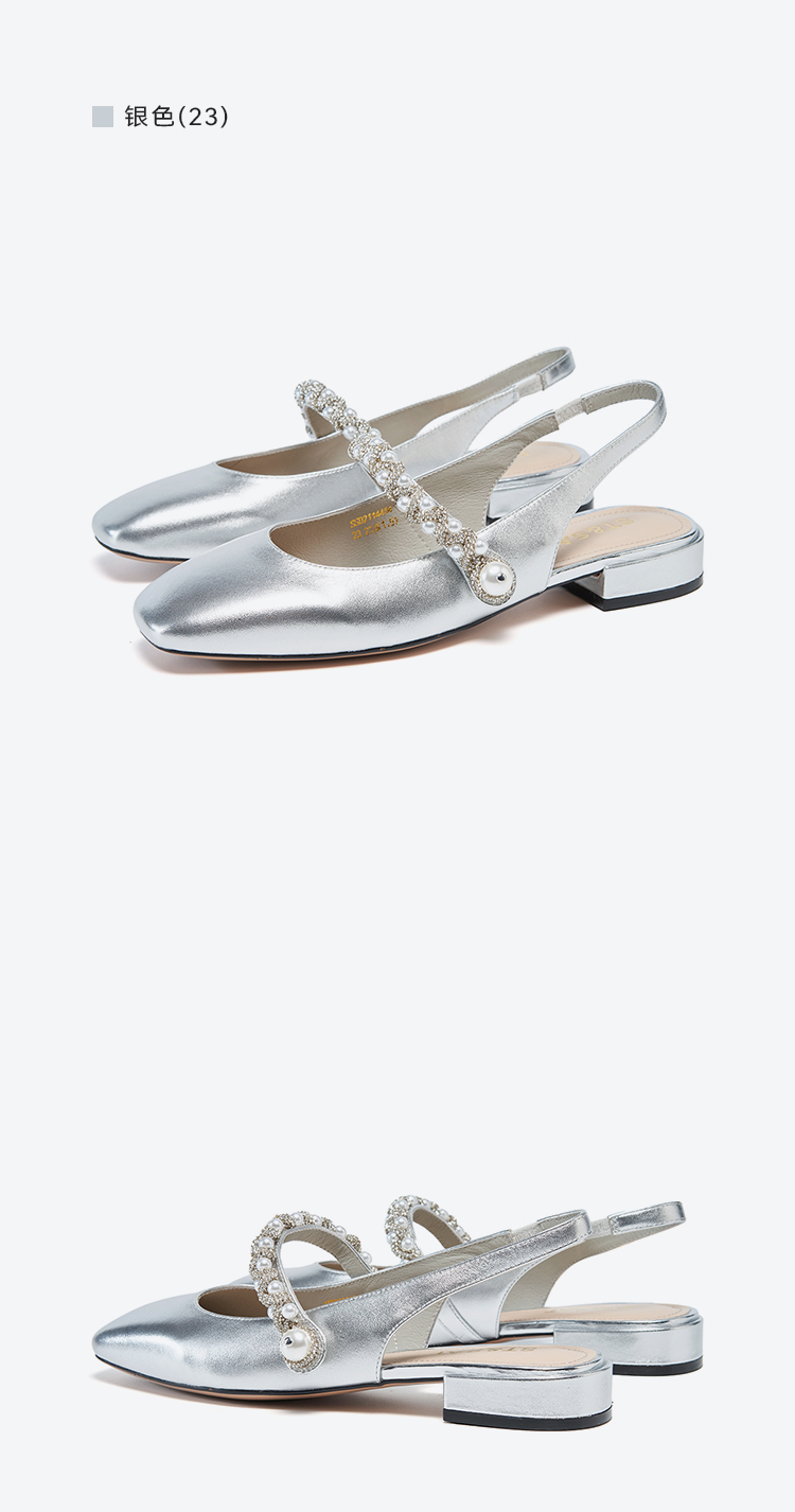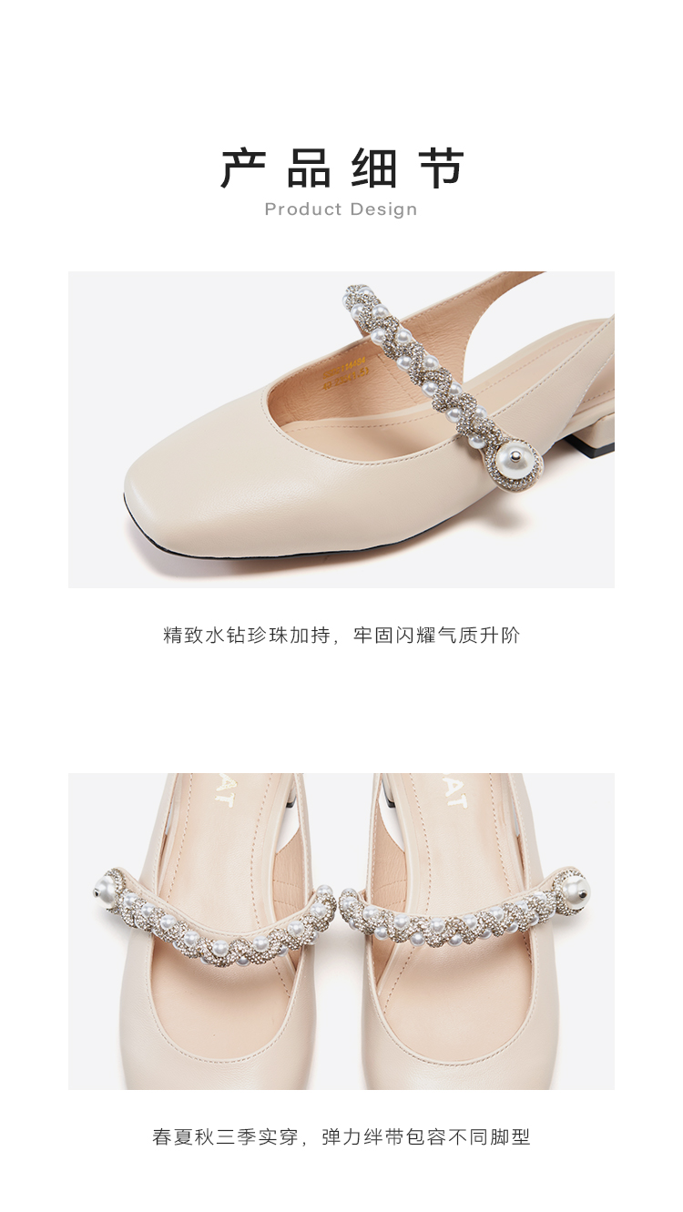 星期六优雅贝珠方头后空粗跟凉鞋SSD2114484