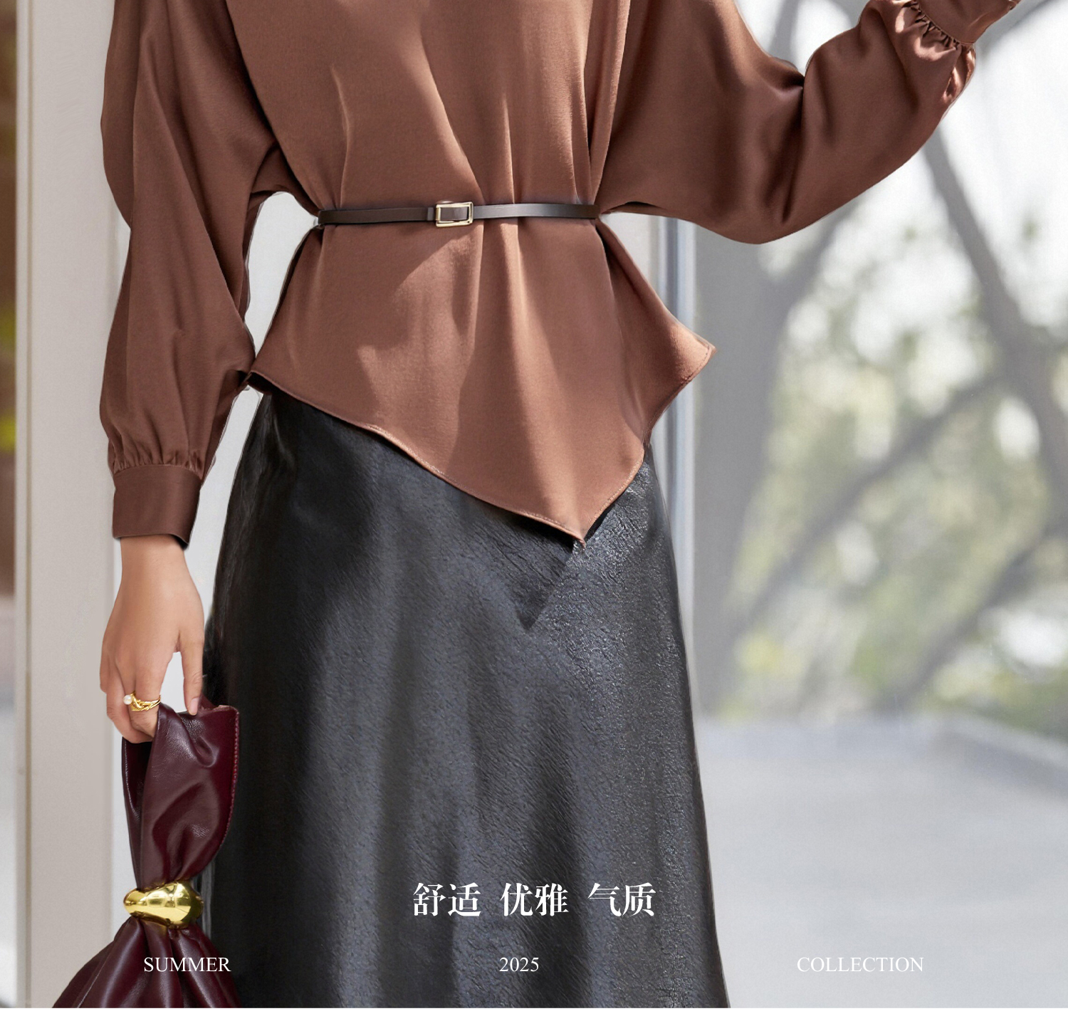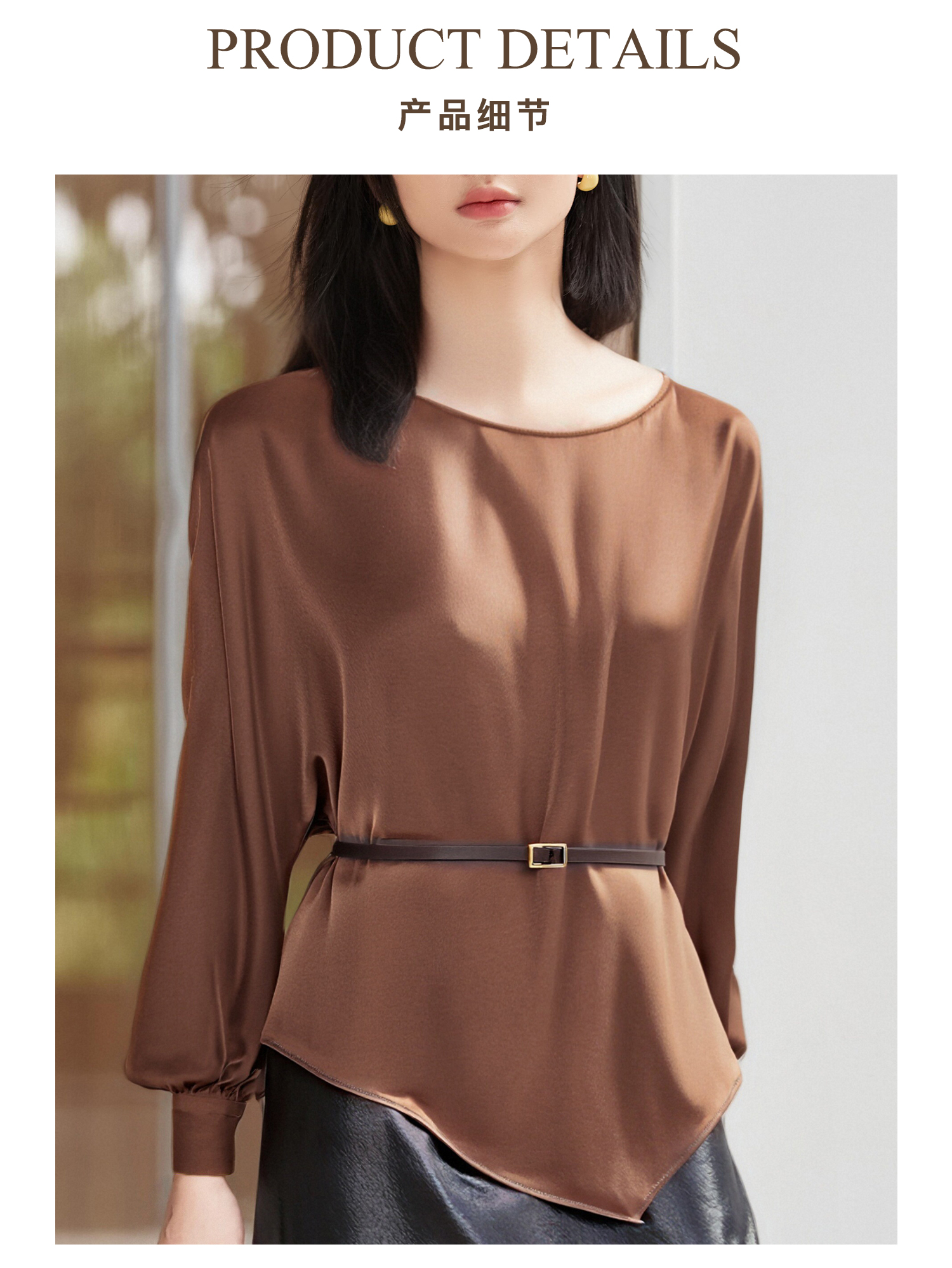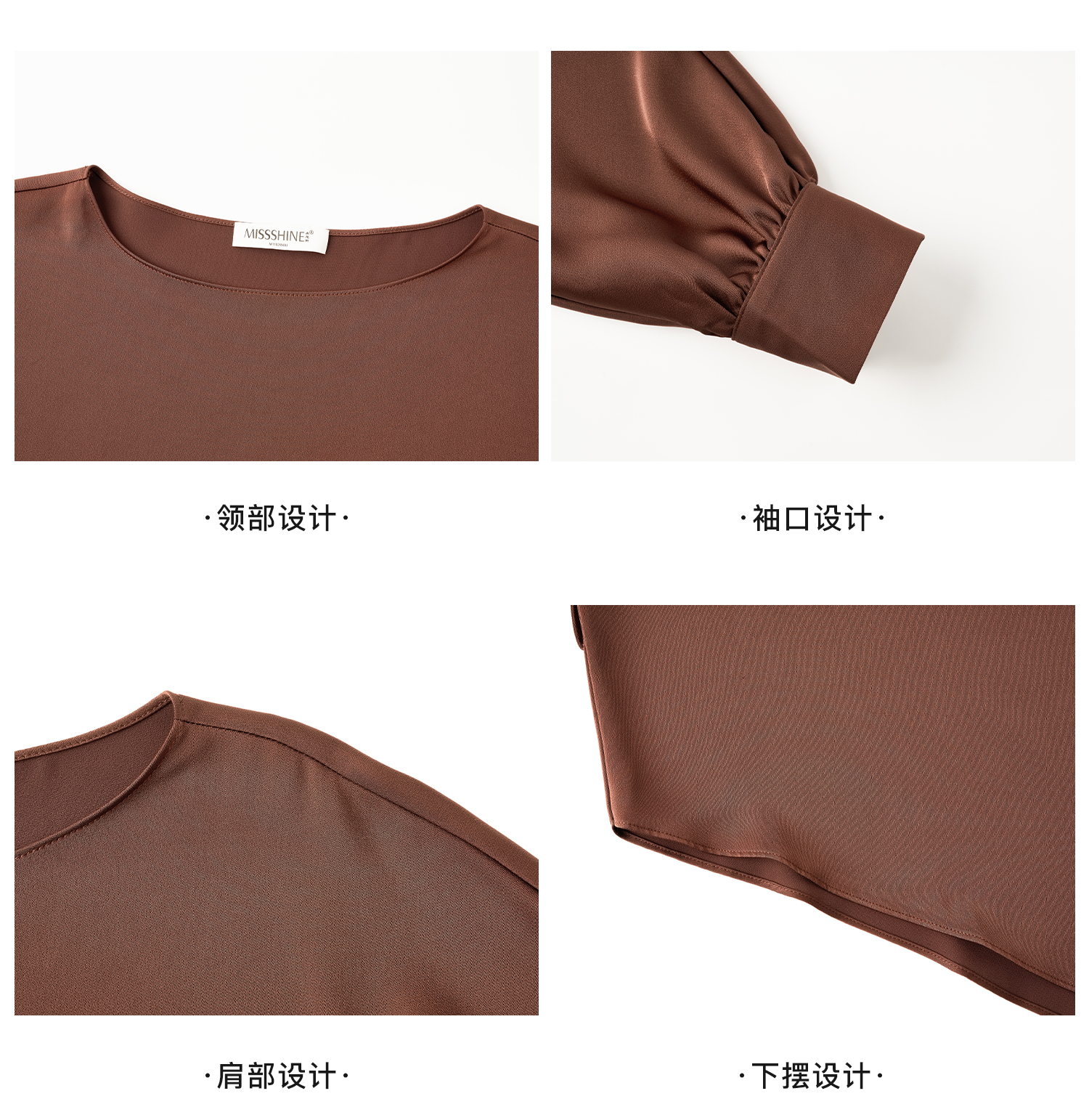 剩M 米思阳2026春季新款复古优雅风圆领收腰衬衫规则下摆气质上衣女3488