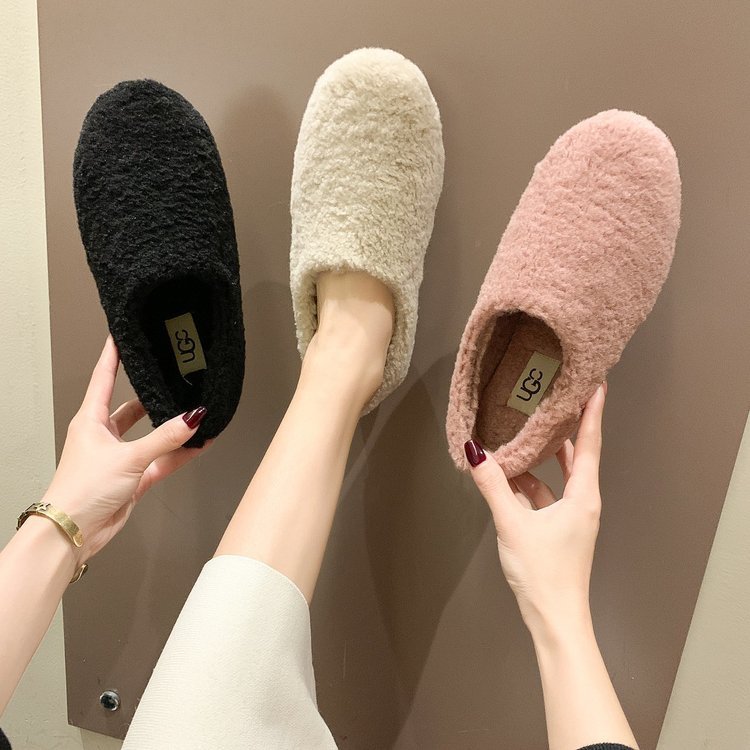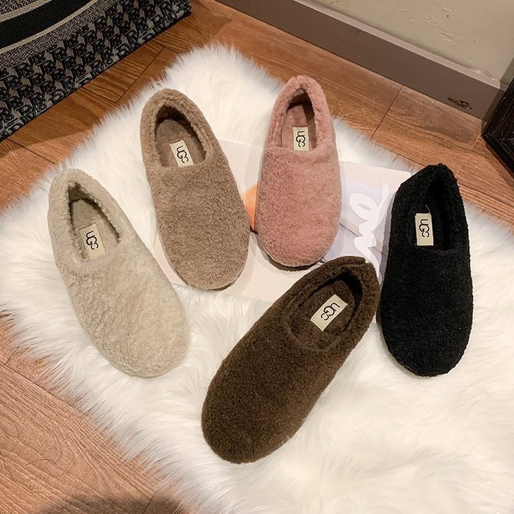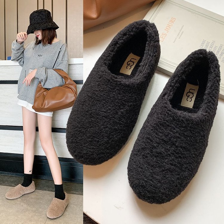 毛毛鞋女秋冬外穿2020新款平底羊羔毛豆豆鞋加绒保暖软底棉鞋