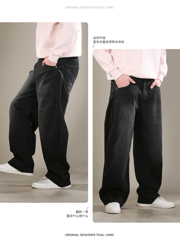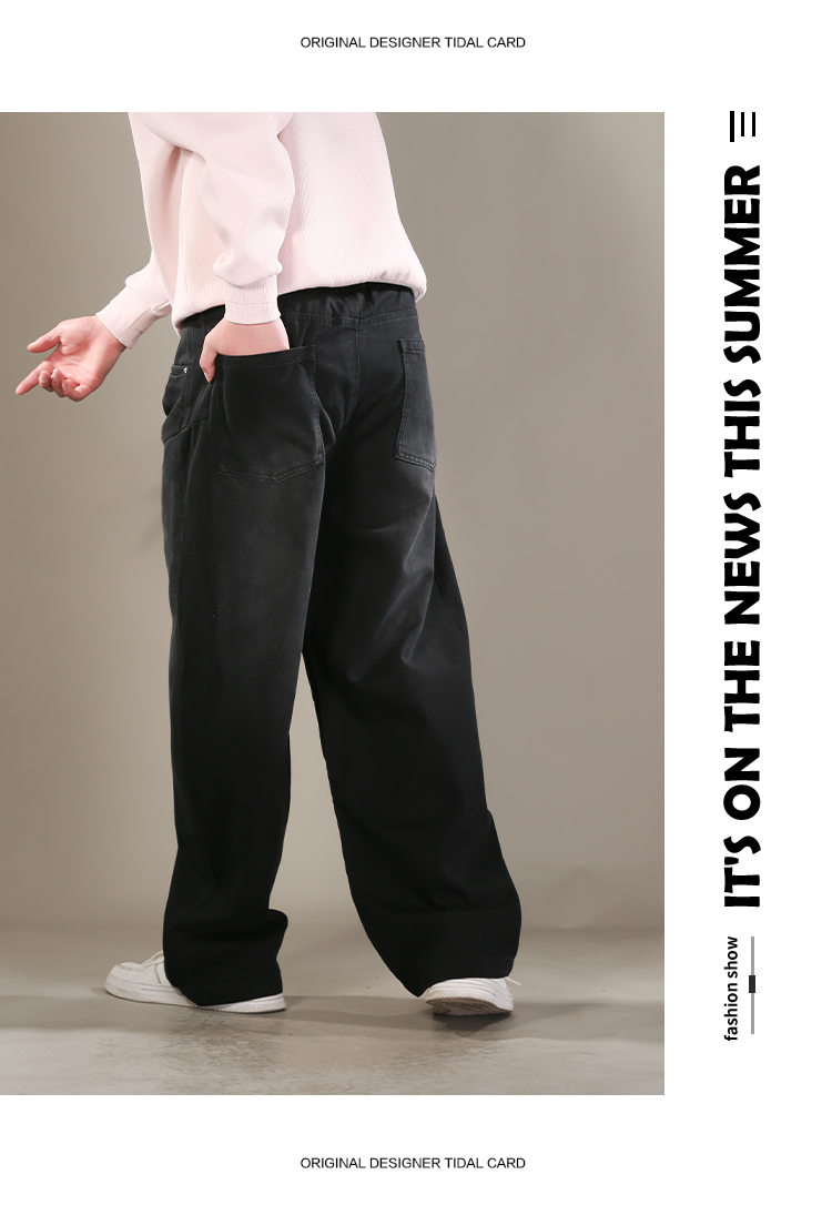 DRONKOO 2026 抽绳表袋侧唛口袋破缝前喷色中厚牛仔长裤