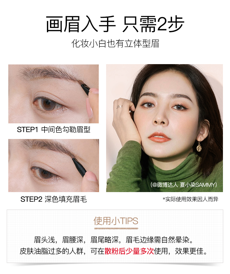 2.中间色用来晕染和过渡,使得眉毛的深浅衔接比较自然。