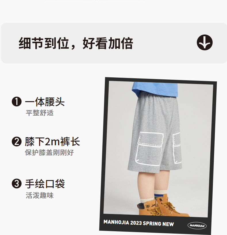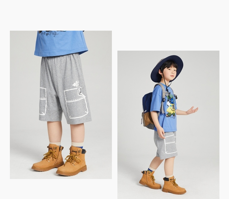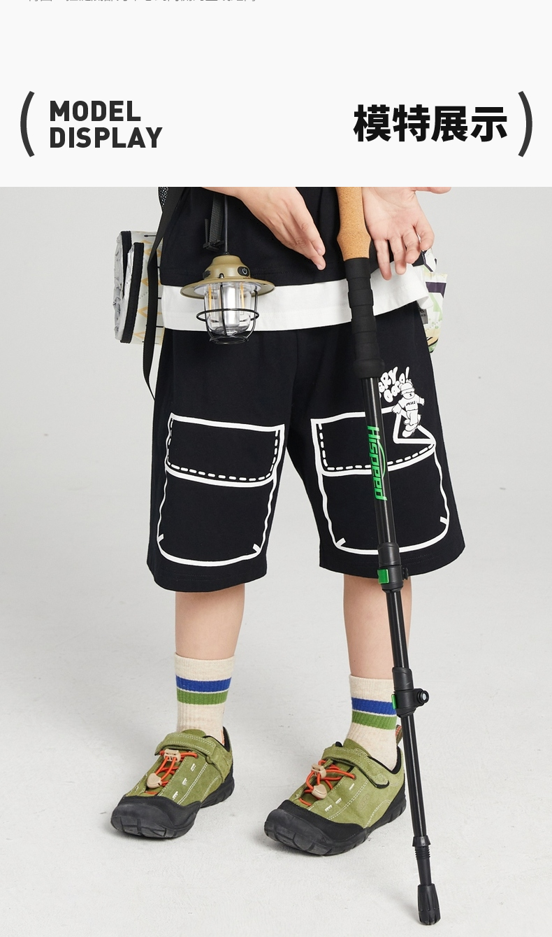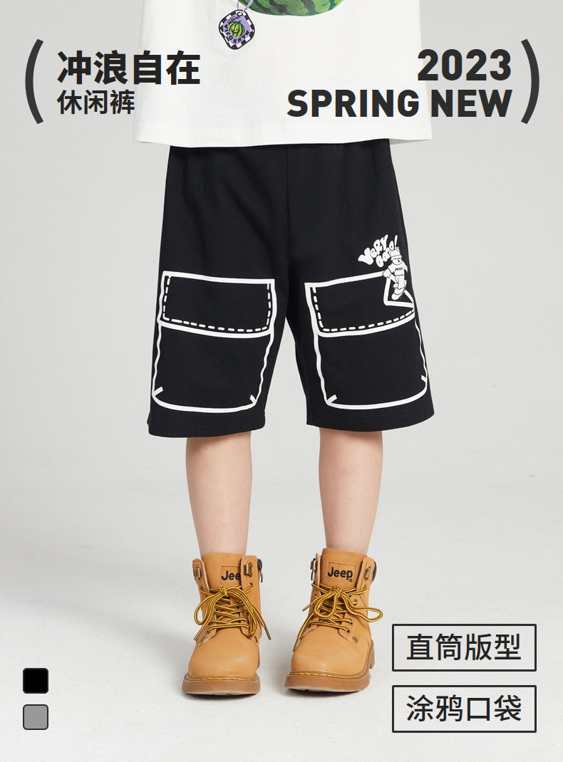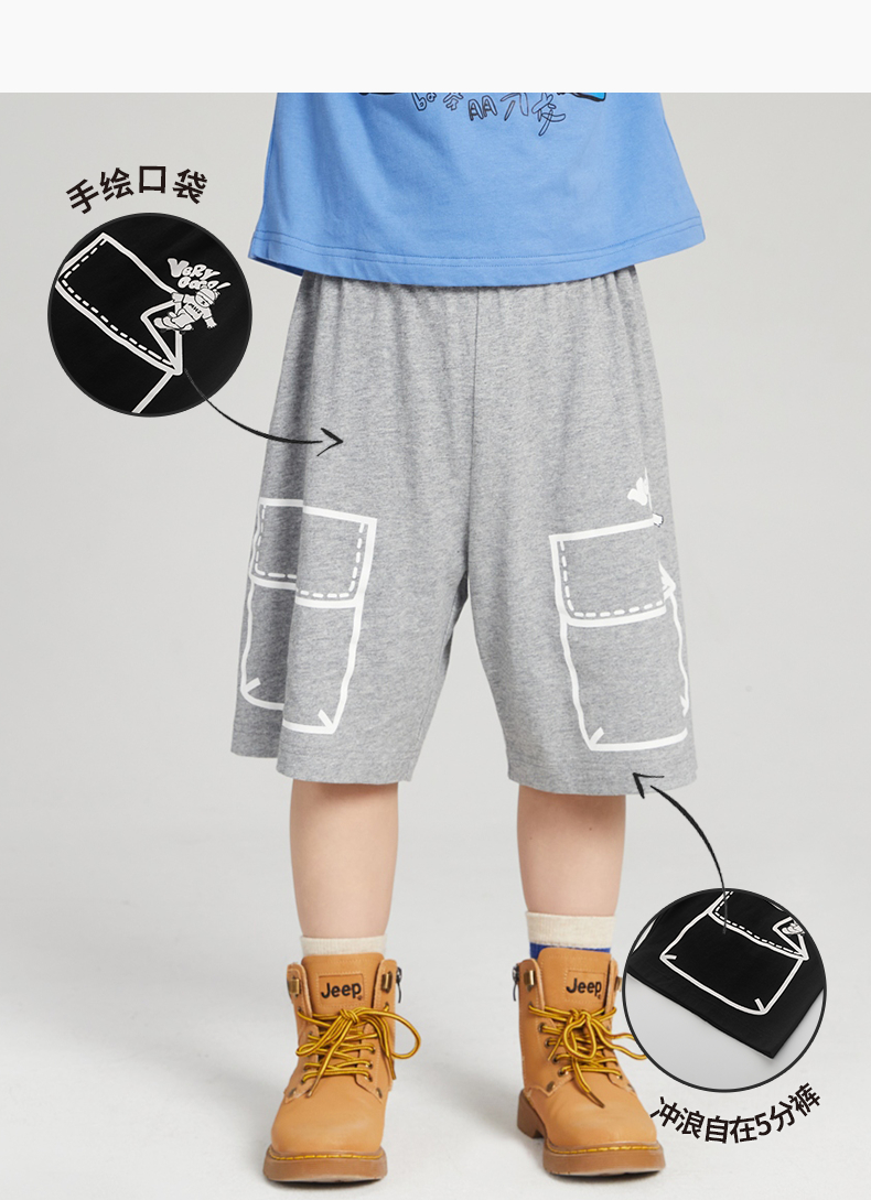 漫画家潮童装男童五分裤2023新款夏季熊涂鸦口袋运动裤儿童夏装