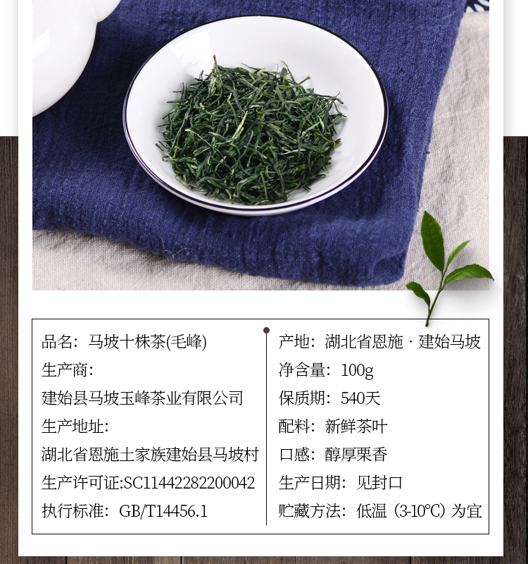 恩施 【832】建始县马坡玉峰茶 十株绿茶(毛峰)100g/袋