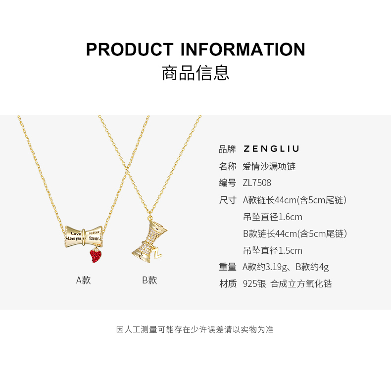 ZENGLIU设计师小蛮腰情侣项链女925纯银一对男女简约锁骨链送闺蜜