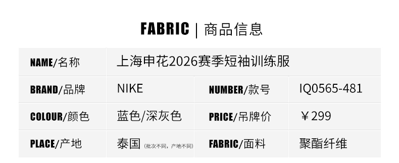 SFS耐克中超2026上海申花球员短袖训练服运动热身男 IQ0565-481