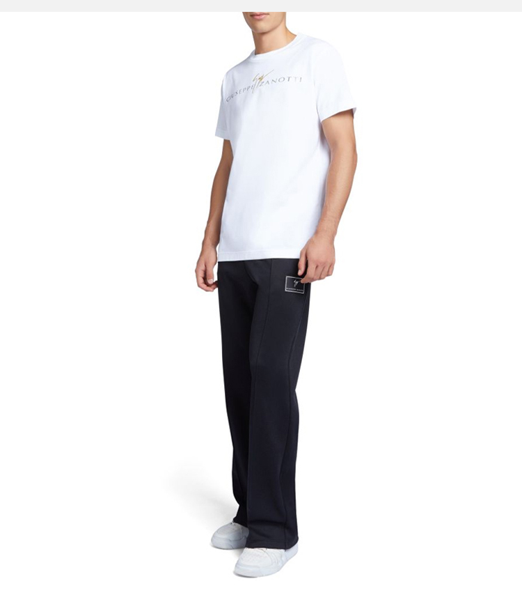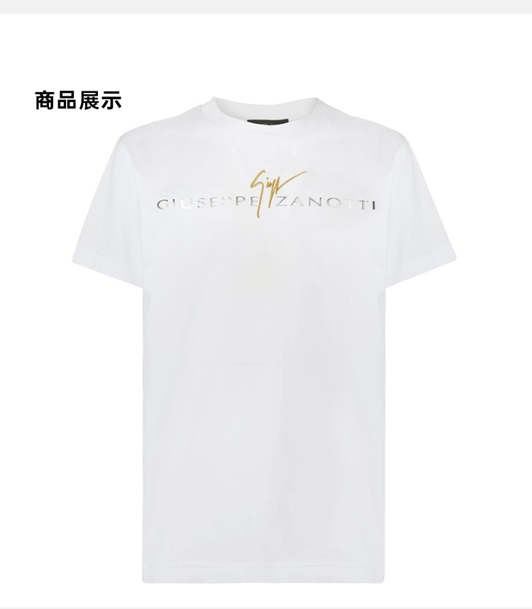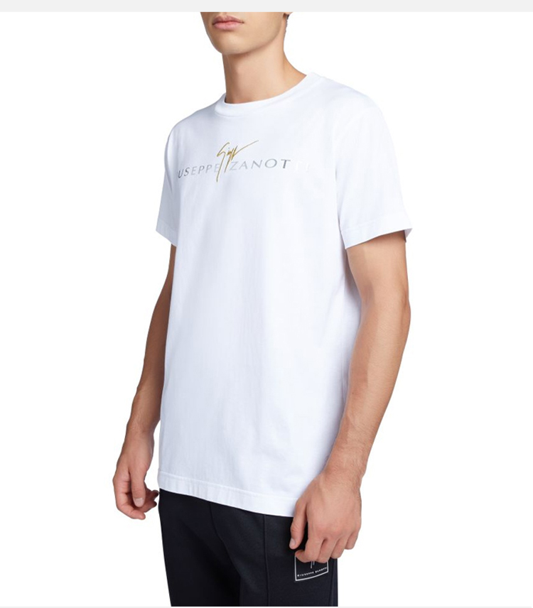 Giuseppe Zanotti 男士签名徽标刺绣棉质圆领短袖T恤 白色 ERU4000001